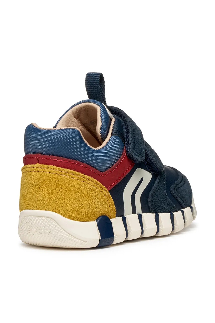Sneakers copii din colecția Geox confecționat dintr-o combinație de piele naturală, piele întoarsă și material textil. Model ușor și confortabil, ideal pentru purtarea zilnică.