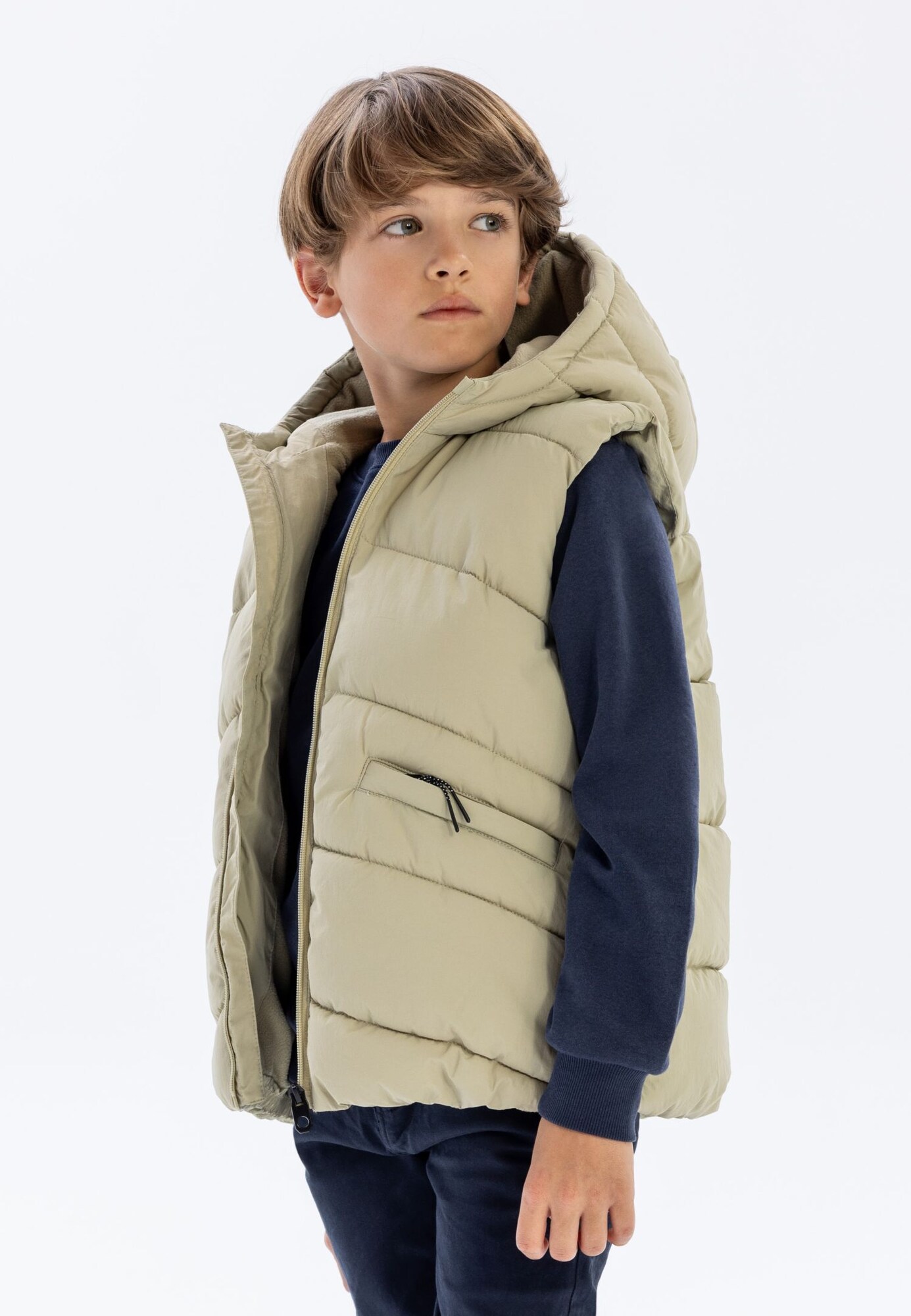 Transformă-ți stilul cu vestă gri piatră MINOTI, un must-have în garderoba ta! Această vestă elegantă nu doar că îți oferă căldură, datorită căptușelii sale pufoase, dar îți îmbunătățește și look-ul cu un design modern și rafinat. Gluga adăugată te protejează de vânt, iar buzunarele laterale cu fermoar îți păstrează lucrurile esențiale în siguranță, fără a compromite stilul. Cu un croi perfect ajustat și un material neted, vestă este alegerea ideală pentru orice ocazie, fie că te îndrepti spre o plimbare în natură sau te pregătești pentru o ieșire în oraș. Nu mai aștepta! Îmbracă-te cu încredere și redefinește-ți stilul cu MINOTI!