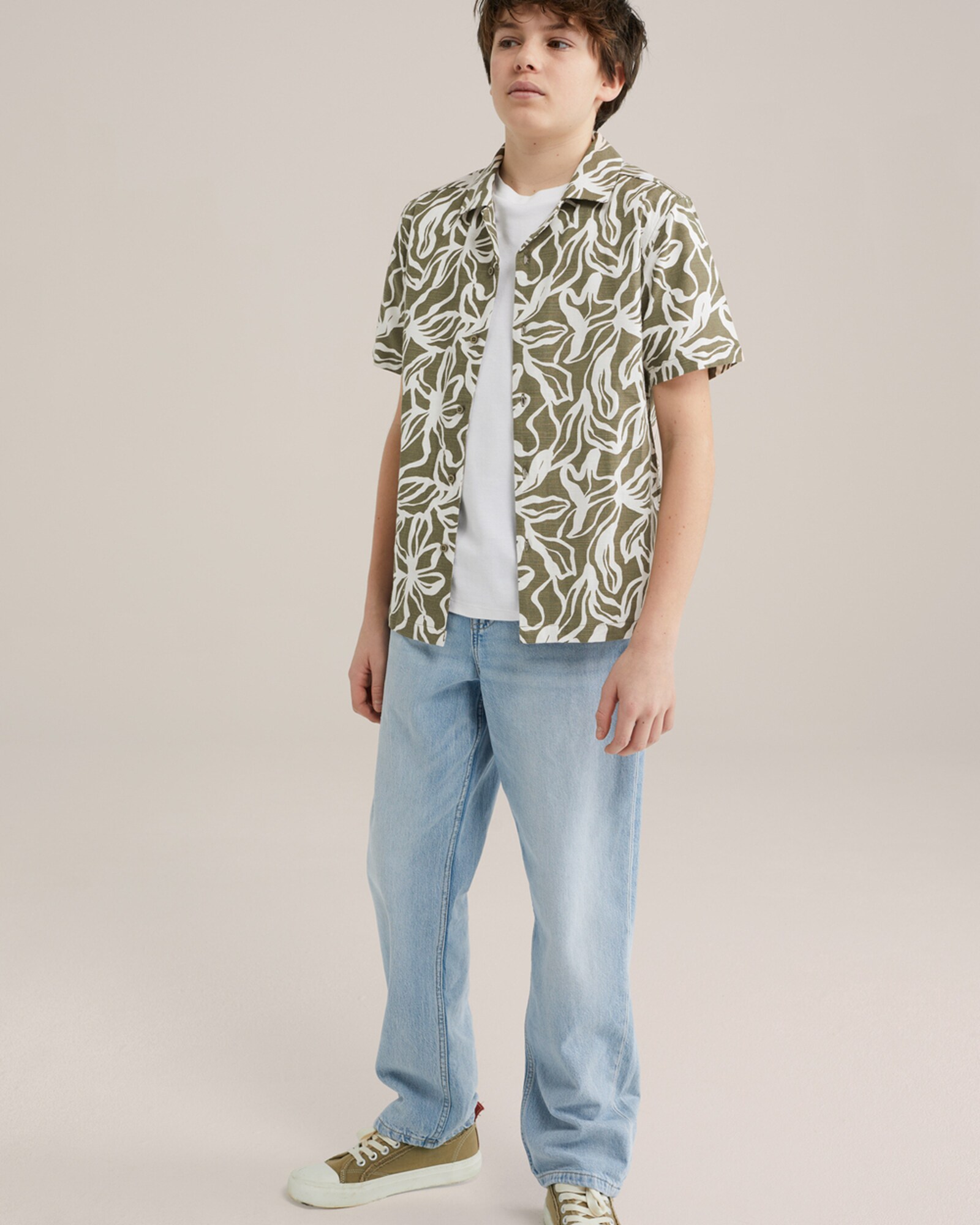 WE Fashion Cămașă oliv / alb