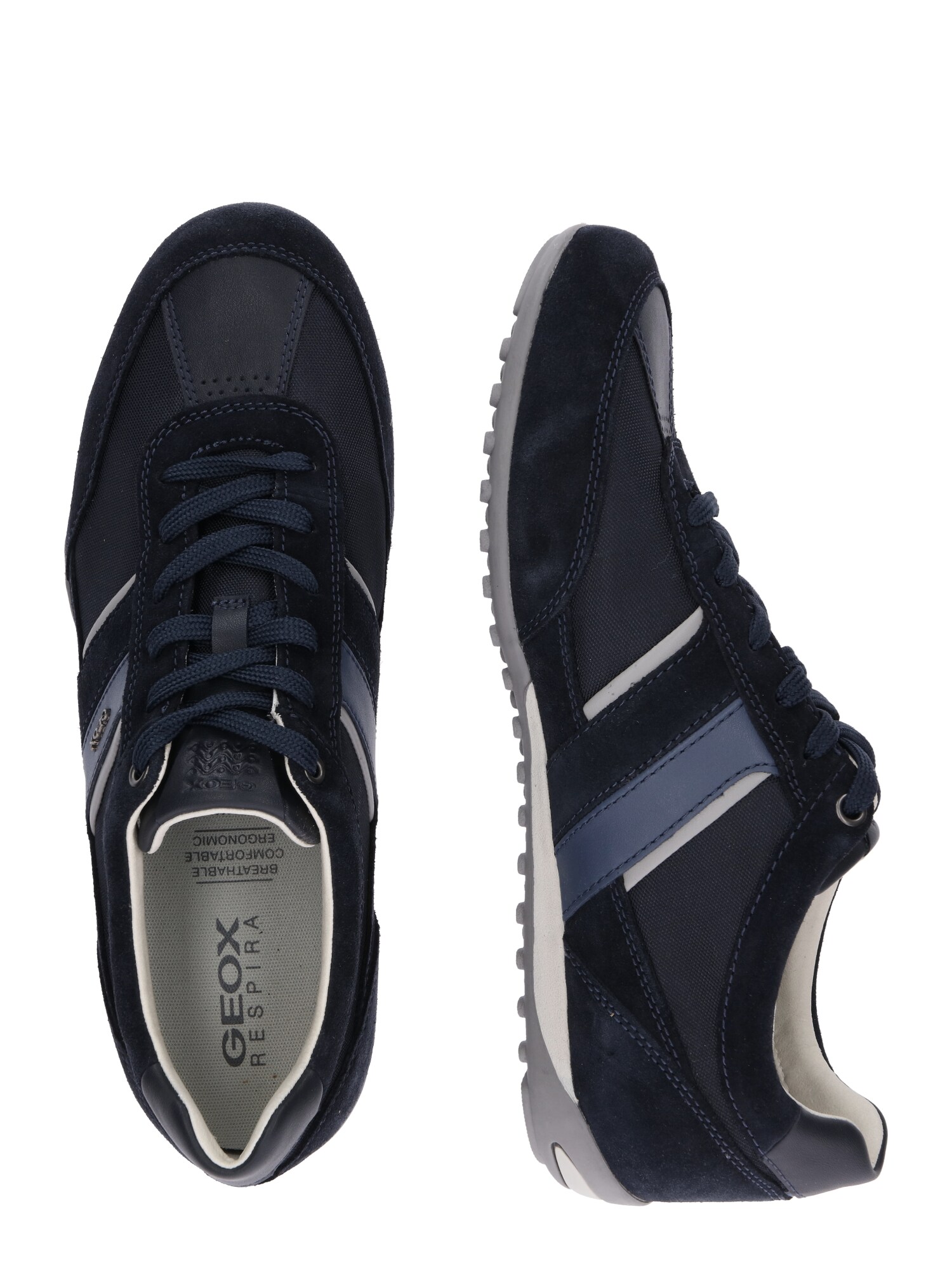 GEOX Sneaker low Wells, bleumarin, albastru porumbel și alb, din piele netedă și piele velur, șiret cu 6 ochiuri
