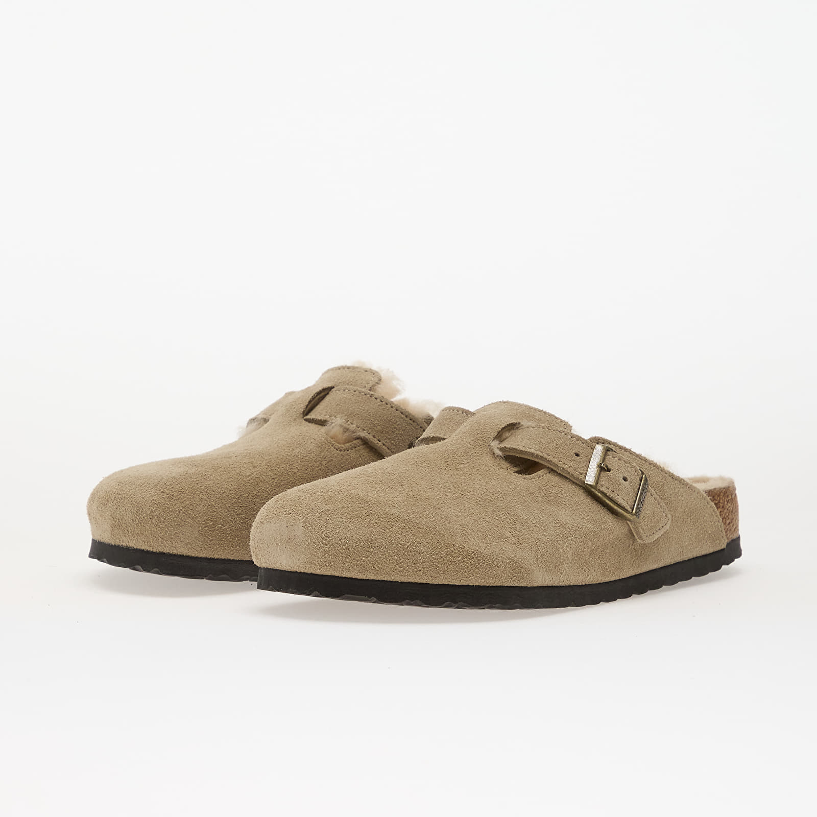 Birkenstock Boston Shearling Pantofi sport, piele velur, blană de shearling, taupe, mărime 46