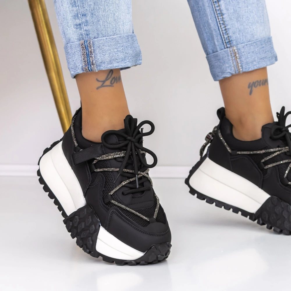 Pantofi Sport Dama cu Platforma 3SZ13 Negru | Mei