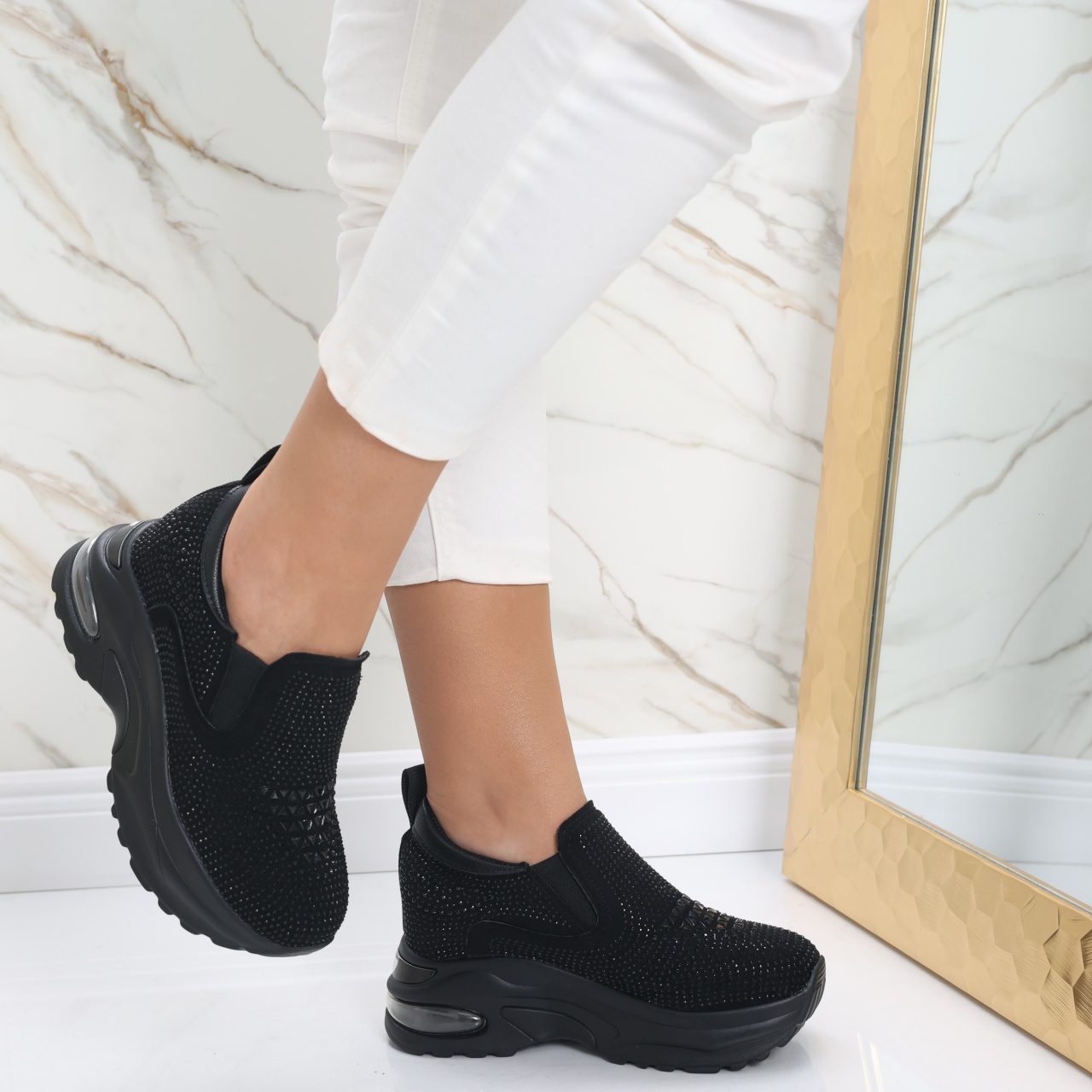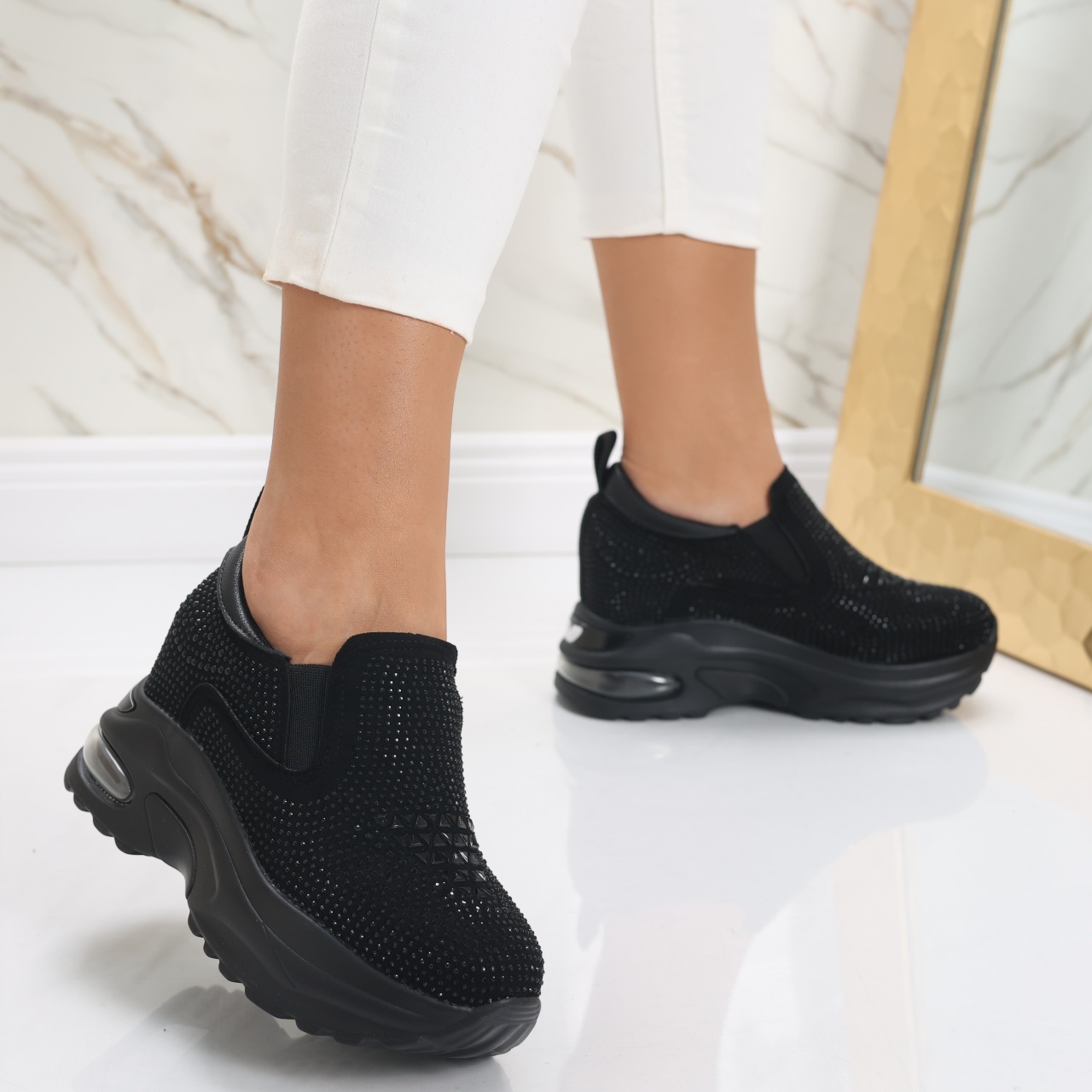 Îmbunătățește-ți stilul cu Sneakersii Dama cu Platforma Negri din Piele Ecologica Intoarsa Elora! Această pereche impresionantă combină îndrăzneala modernă cu confortul suprem, fiind ideală pentru femeile care își doresc să strălucească în fiecare zi. Cu o platformă înaltă de 7.5 centimetri în spate și 3.5 centimetri în față, acești sneakersi îți oferă nu doar un plus de înălțime, ci și un look elegant într-o varietate de ținute, de la cele relaxate la cele rafinate. Confecționați din piele ecologică de calitate superioară, Sneakersii Elora nu doar că sunt plăcuți la atingere, dar îți asigură și un stil sofisticat cu fiecare pas. Culoarea neagră clasică îi face extrem de versatili, fiind partenerul perfect pentru orice ocazie. Cu brandul de încredere ModaStil, poți fi sigură că alegi un produs care îmbină calitatea cu designul elegant. Nu lăsa să treacă aceasta ocazie – alege Sneakersii Dama Elora și transformă-ți garderoba astfel încât să te simți încrezătoare și chic în fiecare moment! Fii tu însăți, dar un pic mai înaltă!