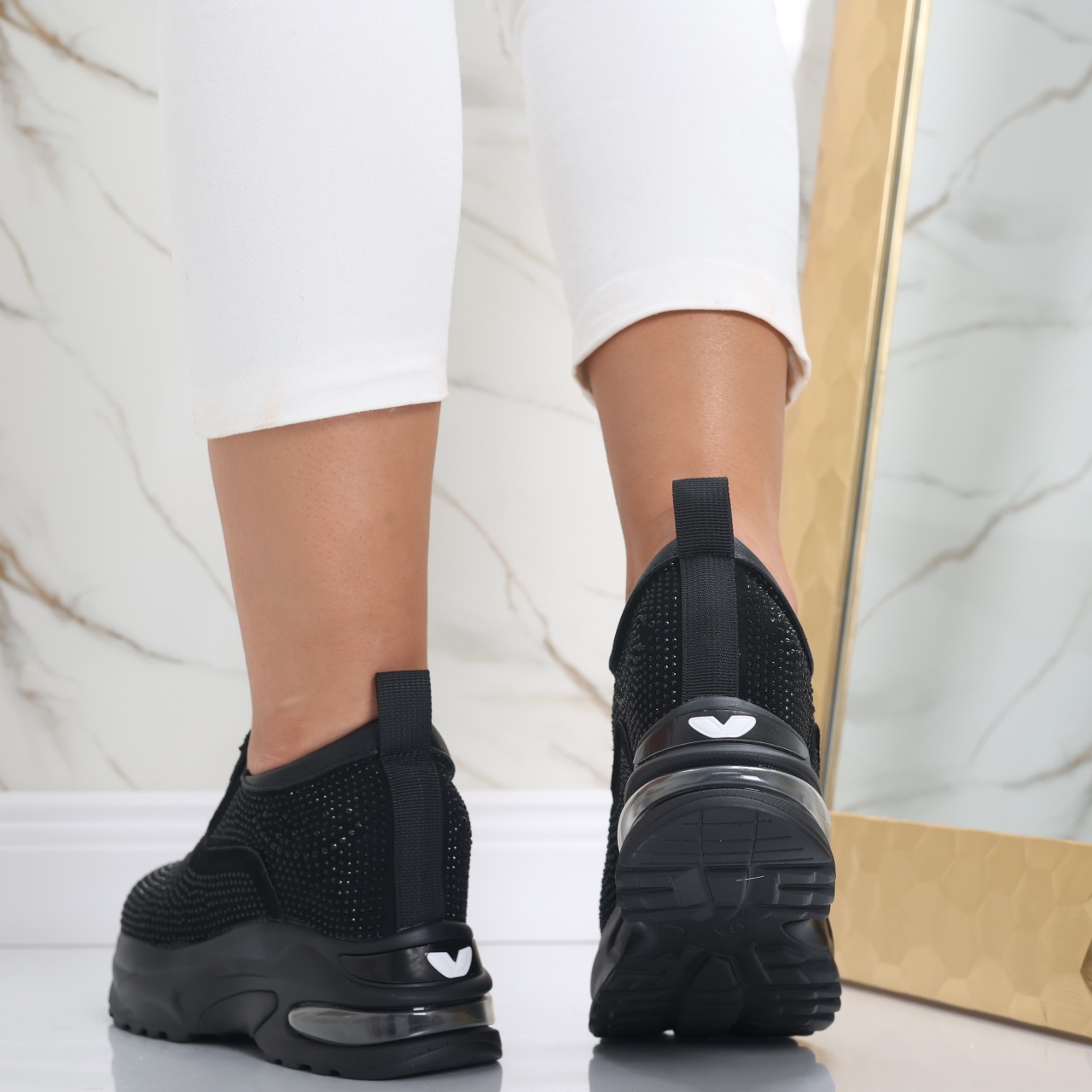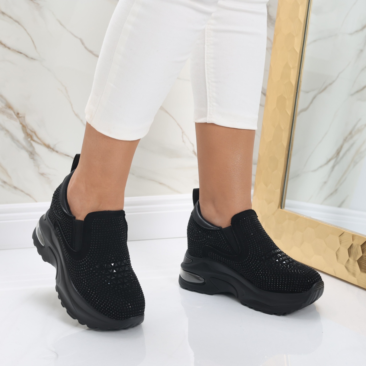 Sneakers dama cu Platforma Negri din Piele Ecologica Intoarsa Elora