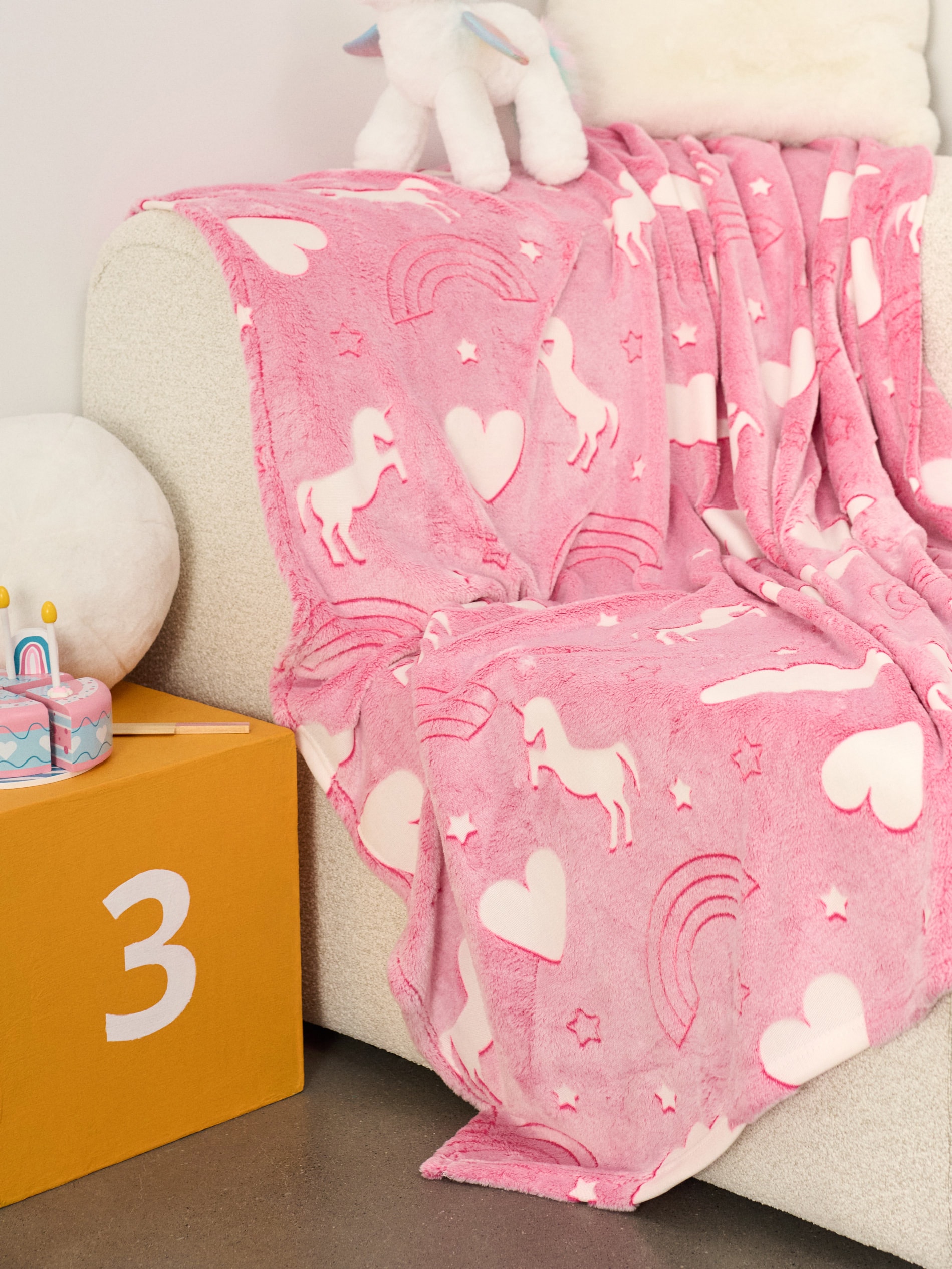 Sinsay - Pătură cu imprimeu fluorescent - roz-fuchsia -