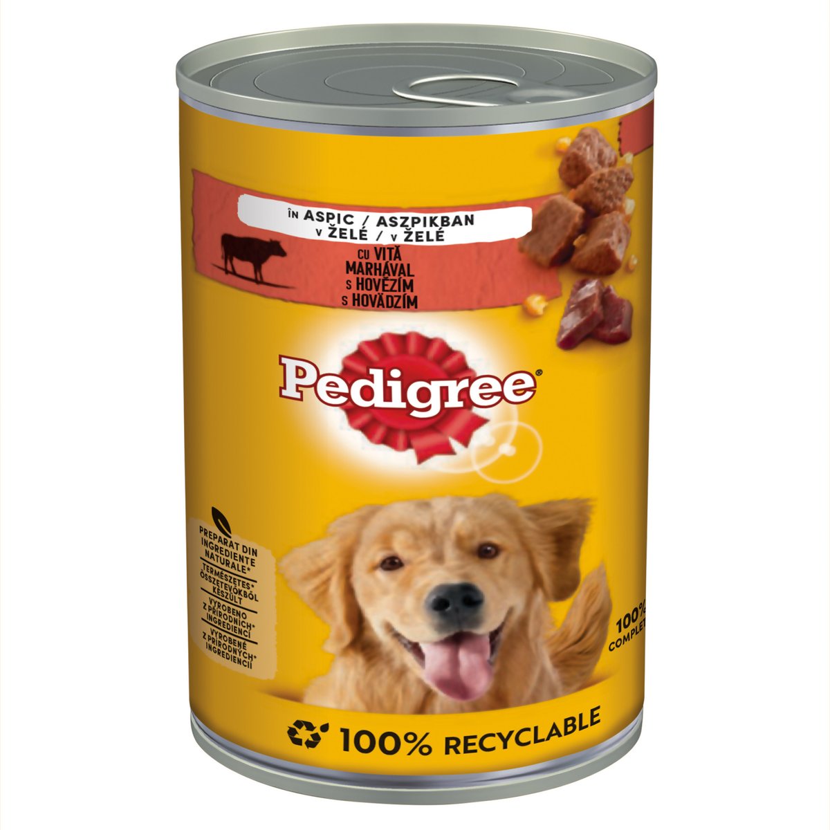 Prietenia cu cainii ne da mereu o stare de bine, iar noi, cei de la Pedigree, credem cu tarie in acest sentiment. Zi de zi, minunata lor inocenta scoate la iveala ceea ce este mai bun in noi. Gama completa de hrana gustoasa si sanatoasa Pedigree pentru caini, inclusiv recompense, ofera tot ceea ce este esential pentru a sustine, proteja si alimenta exuberanta dragoste de viata a cainilor. Astfel, zi de zi, proprietarii au posibilitatea de a raspunde cu ceva bun la starea de bine pe care le-o ofera cainii lor. Gama larga de meniuri gustoase Pedigree pentru caini, cu hrana completa si bine echilibrat, ofera tot ceea ce le este necesar cainilor pentru a se dezvolta optim. Bucuria cainelui va fi molipsitoare, hrana aceasta gustoasa alimentand in mod vizibil starea sa de bine. Fiind 100% completa si echilibrata, hrana din conservele Pedigree este o hrana umeda nutritiva pentru caini, care va transforma fiecare masa in explozii molipsitoare de entuziasm. Dezvoltata cu ajutorul nutritionistilor si al medicilor veterinari de la Centrul Waltham pentru Nutritia Animalelor de Companie, hrana Pedigree pentru caini contine toate elementele nutritive necesare pentru a sustine o digestie optima, sanatatea pielii si a blanii, precum si un sistem imunitar puternic si oase sanatoase. Hrana pentru caini Pedigree la conserva nu contine arome, coloranti sau conservanti artificiali.A se pastra inchis, la loc uscat si racoros, la temperatura camerei.