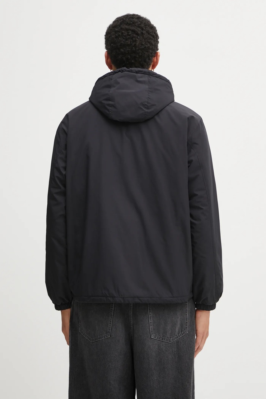 - Marginea inferioară este finisată cu șnururi cu opritoare, care, datorită tivului reglabil, sporesc izolația de frig.