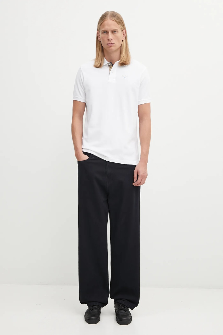 Barbour Polo de bumbac Tartan Pique alb, M, cu guler, nasturi scurți, logo brodat pe față, maneci scurte
