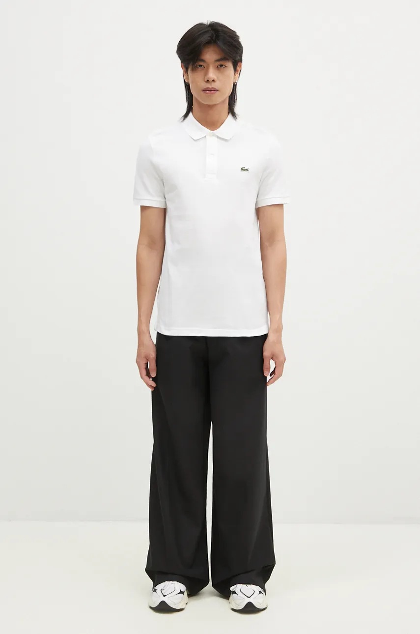 Lacoste polo din bumbac alb fason slim cu guler si nasturi marime M