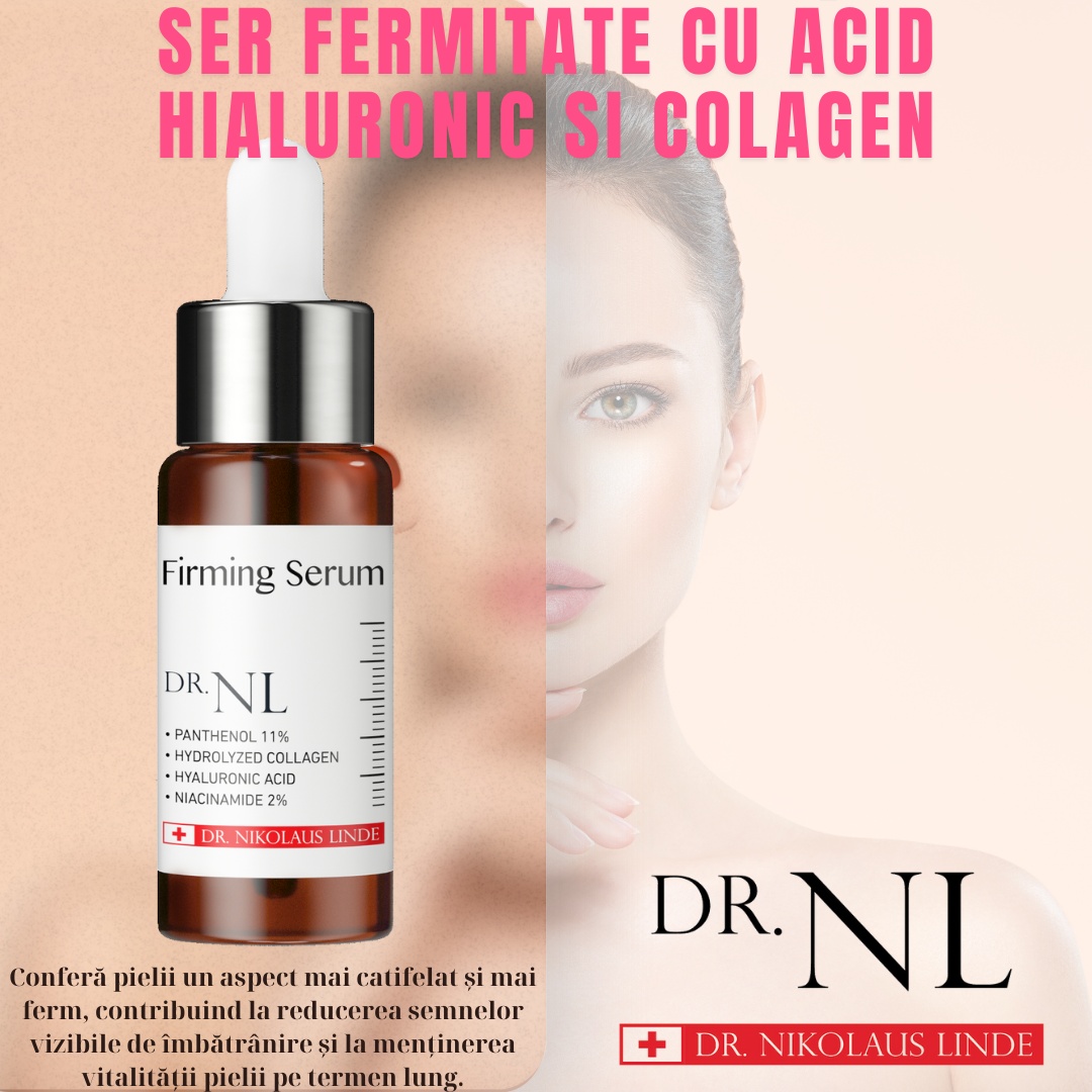 Doctor NL Firming Serum — ser cu Panthenol 11%, Acid Hialuronic și Colagen Solubil (20 ml) Luptă împotriva pierderii elasticității pielii cu Doctor NL Firming Serum. Această formulă certificată CPNP și testată pentru sensibilitate este special concepută pentru a îmbunătăți fermitatea pielii. Îmbogățit cu 11% Panthenol, Colagen și Acid Hialuronic, serul crește în mod natural fermitatea si elasticitatea pielii, în timp ce Centella calmează și liniștește iritațiile. Acest produs este testat hipoalergenic si este ideal pentru îngrijirea zilnică anti-aging. Doctor NL Firming Serum este un ser dermato-cosmetic conceput pentru a oferi pielii hidratare profundă, calmare imediată și o elasticitate vizibil îmbunătățită. Ingrediente active principale Panthenol 11% — calmează și regenerează pielea, ajutând la reducerea iritațiilor și la menținerea unui aspect uniform și neted. Acid hialuronic cu greutate moleculară mare și mică — atrage și reține apa în straturile pielii, hidratând intens și susținând elasticitatea naturală. Moleculele mari formează un strat protector, iar cele mici pătrund în profunzime. Colagen solubil — extract cu greutate moleculară scăzută, ușor de absorbit, care sprijină fermitatea și elasticitatea pielii. Cica (Centella Asiatica) — ingredient cunoscut pentru efectele calmante și regenerante. Beneficii principale Hidratează intensiv pielea uscată și deshidratată. Reduce ridurile și îmbunătățește aspectul pielii lipsite de colagen și fermitate. Reduce senzația de disconfort și piele tensionată. Proiectat pentru a crește fermitatea și elasticitatea pielii. Conferă un aspect mai neted, mai uniform și mai tânăr. Pentru cine este potrivit Persoane cu pielea uscată sau sensibilă. Cei care au nevoie de un ser calmant și hidratant în rutina zilnică. Persoane care doresc să prevină pierderea fermității și a elasticității pielii. Mod de utilizare Aplică câteva picături pe pielea curată, dimineața și seara, înainte de crema hidratantă. Masează delicat până la absorbția completă. Specificații produs Tip: ser hidratant și fermizant. Volum: 20 ml. Textură: fluid ușor, cu absorbție rapidă. Concluzie Doctor NL Firming Serum este o alegere excelentă pentru o rutină de îngrijire orientată spre hidratare intensă, calmare și menținerea elasticității pielii. Combinația dintre Panthenol 11%, acid hialuronic și colagen solubil transformă acest ser într-un produs premium pentru piele mai fermă, mai hidratată și mai sănătoasă. Doctor Nikolaus Linde este un lider mondial în medicina estetică din Elveția. Doctor NL reunește cea mai modernă tehnologie cosmetică coreeană cu filosofia unică a frumuseții a Doctor med. Nikolaus Linde, pentru a asigura o eficacitate excepțională și sănătatea pielii. Doctor Linde este un expert internațional în frumusețe specializat în tratamentul ridurilor și al transformărilor pielii, folosind cele mai noi și inovatoare tehnologii. Doctor Linde instruiește medici în academiile sale internaționale și îi place să transmită cunoștințele și experiența sa în domeniul esteticii. De data aceasta, a lansat un brand profesional de cosmetice derma numit Doctor NL, integrând tehnologia coreeană de fabricație cosmetică. Brandul Doctor NL a efectuat cercetări aprofundate, a găsit modalități de a îmbunătăți în mod fundamental starea pielii și a creat o linie de produse condusă de știință, care oferă o eficacitate remarcabilă prin furnizarea ingredientelor nutritive de cea mai înaltă calitate pentru pielea ta.