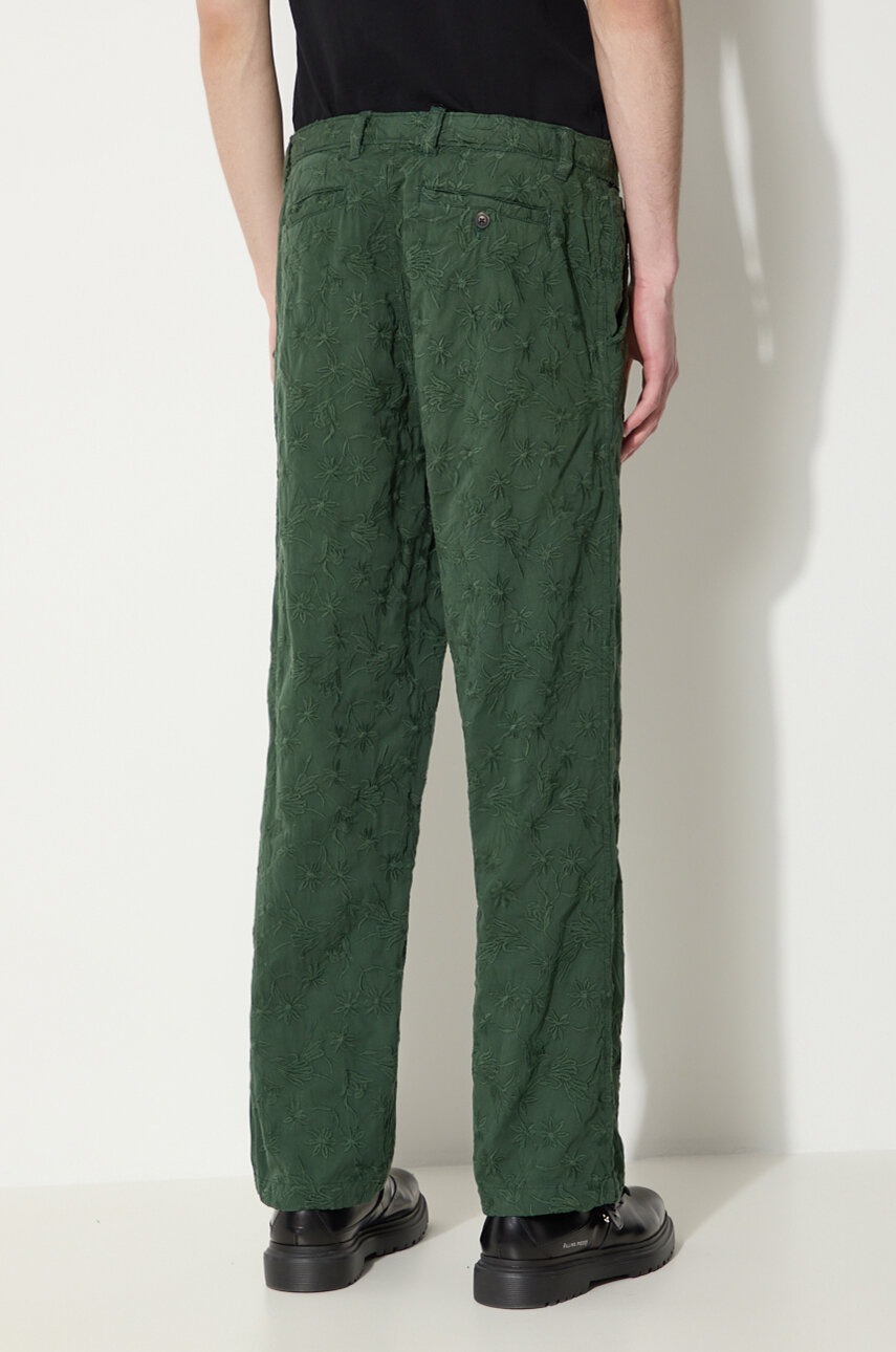 Corridor Pantaloni de bumbac verzi cu broderie florală, croială dreaptă, talie obișnuită, mărimea 32