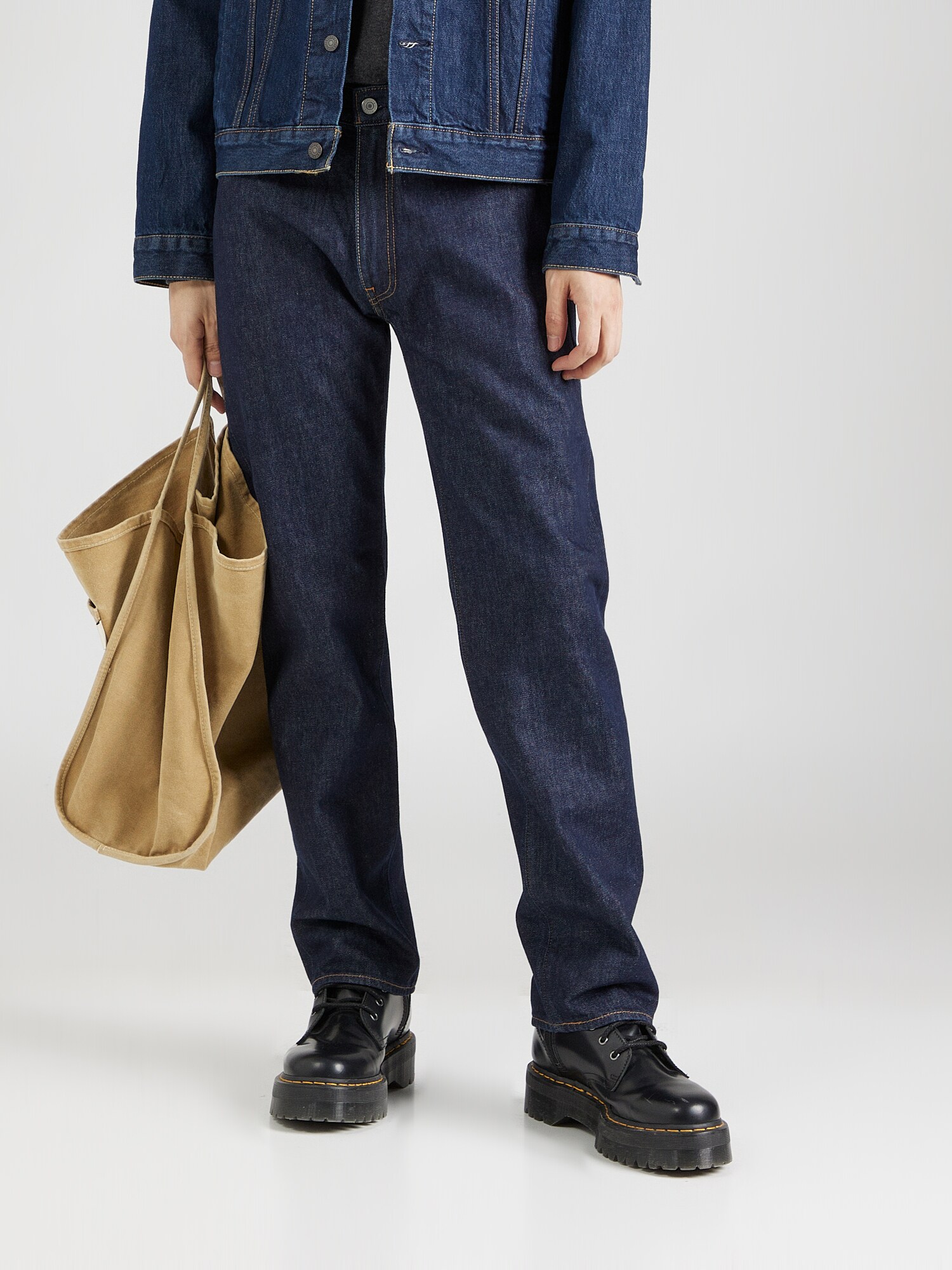 Design: Tiv/ margine tighelită, Închidere cu fermoar, Model cu 5 buzunare; Tip de închidere: Fermoar; Material: Denim; Imprimeu: Monocrom; Detalii: Cusături contrastante, Petic cu logo, Găici pentru curea; Culoare: Rinsed/dark washed; Lungimea: Lung/maxi; Tipul croiului: Regular