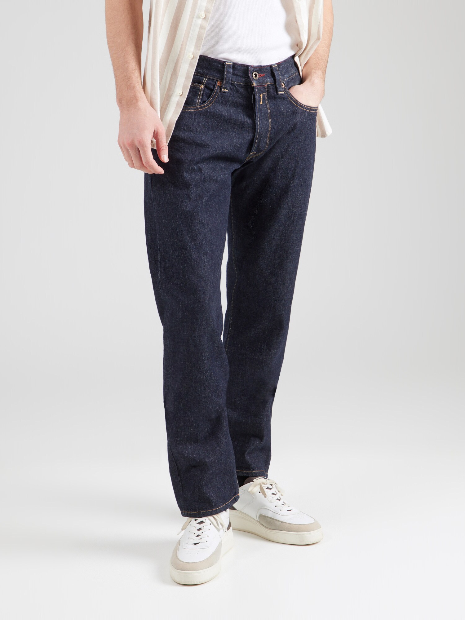 Design: Tiv/ margine tighelită, Închidere cu fermoar, Model cu 5 buzunare; Tip de închidere: Fermoar; Material: Denim; Imprimeu: Monocrom; Detalii: Material rigid, Găici pentru curea; Culoare: Rinsed/dark washed; Lungimea: Lung/maxi; Tipul croiului: Regular