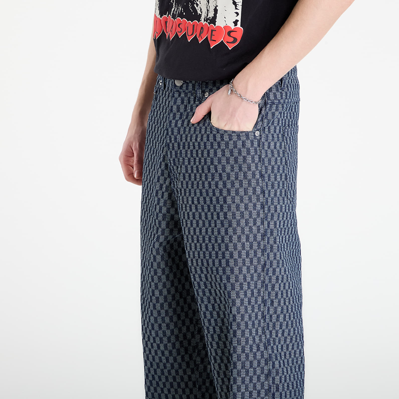 Blugi PLEASURES Formula Baggy Jeans Indigo Checker 28