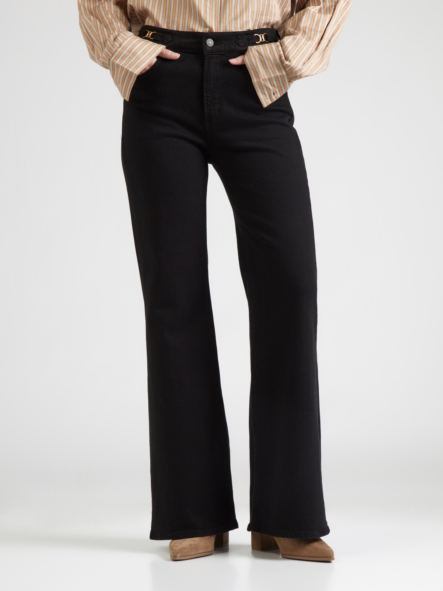 Design: Tiv/ margine tighelită, Model cu 5 buzunare; Tip de închidere: Fermoar; Material: Denim; Imprimeu: Monocrom; Detalii: Cusături ton în ton, Găici pentru curea; Culoare: Raw/unwashed; Lungimea: Lung/maxi; Tipul croiului: Wide leg; Tipul taliei: Mid waist