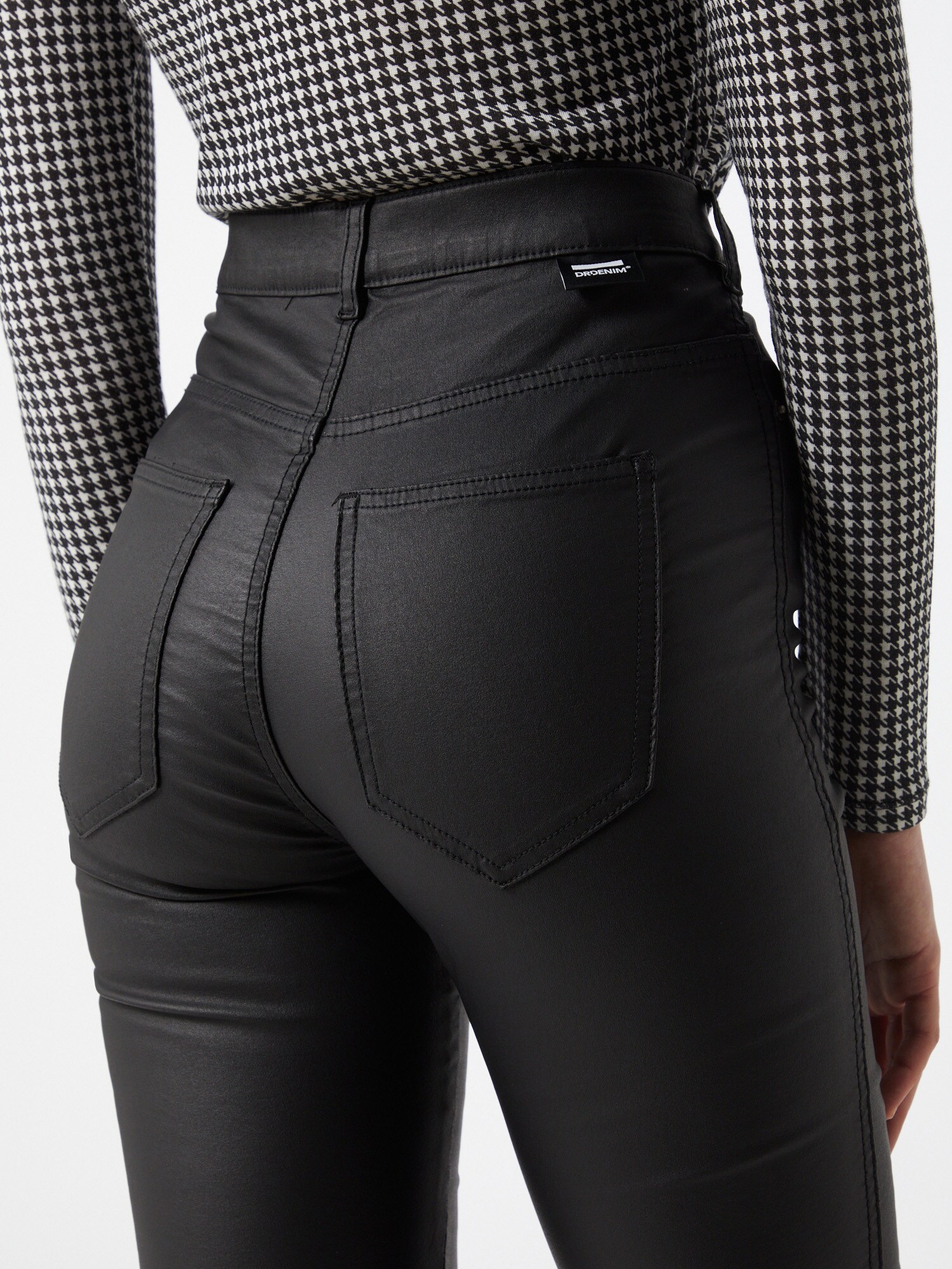 Design: Tiv/ margine tighelită, Închidere cu fermoar, Buzunare spate, Buzunare laterale deschise; Tip de închidere: Fermoar; Material: Denim; Imprimeu: Monocrom; Detalii: Pietricele decorative, Petic cu logo, Cusături ton în ton, Material moale, Găici pentru curea; Culoare: Coated; Lungimea: Lung/maxi; Tipul croiului: Skinny; Tipul taliei: High waist