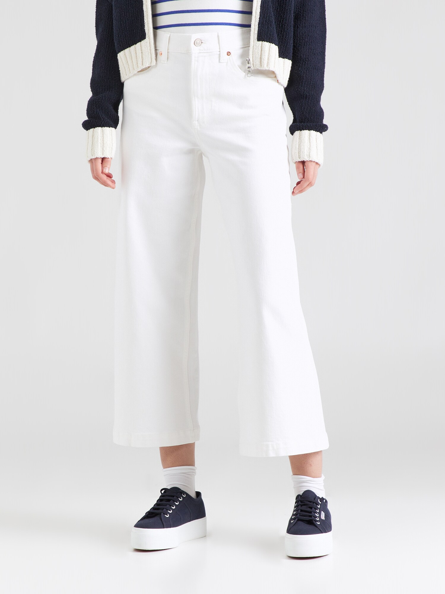 Îmbracă-ți stilul cu jeans-ii GAP din denim alb, concepuți pentru a-ți oferi confort și eleganță în fiecare zi! Acest model modern, cu tiv tăiat și margine tighelită, îți pune în evidență picioarele datorită croiului wide leg, aducând un aer trendy și sofisticat ținerii tale. Fermoarul de închidere asigură o fixare sigură, iar cele cinci buzunare îți oferă suficient spațiu pentru esențiale, fără a compromite stilul. Detalii precum pietricelele decorative și cusăturile ton pe ton transformă acești blugi dintr-o simplă piesă vestimentară într-o declarație de modă. Fie că îi porți la birou sau la o ieșire cu prietenii, jeans-ii tăi GAP sunt alegerea perfectă pentru a te simți bine și a arăta fabulos. Nu aștepta! Fă-ți loc în garderobă pentru aceste must-have-uri!