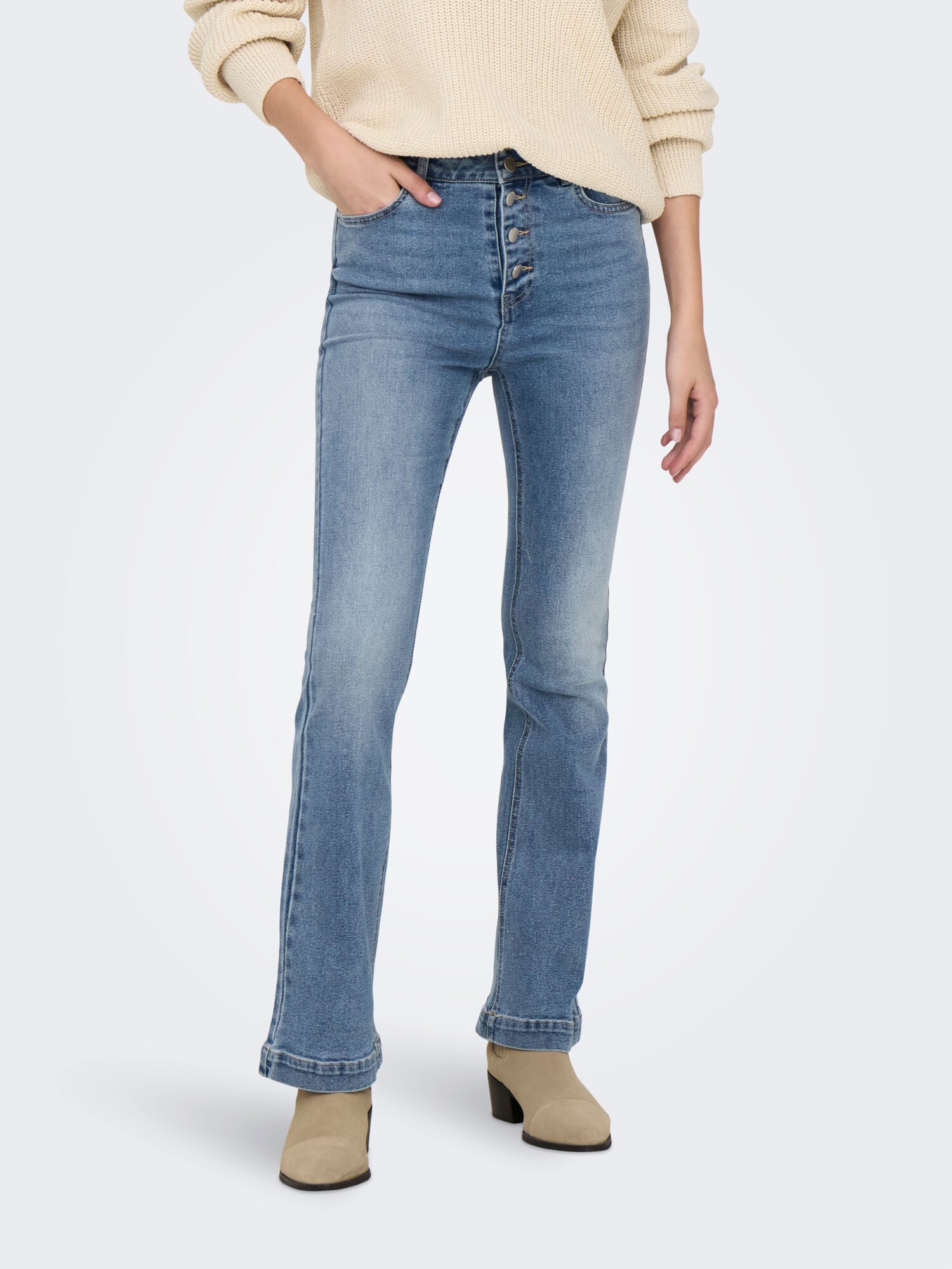Fă-te remarcată în fiecare zi cu blugii JDYVICKY, care combină perfect stilul clasic cu o atitudine modernă. Acești blugi albastru denim, cu un efect prespălat fascinant, se potrivesc ideal pentru orice ocazie, oferindu-ți atât confort, cât și un look trendy. Designul cu 5 buzunare și închidere cu nasturi îți aduce un plus de funcționalitate și versatilitate, iar croiul evazat și talia medie se conturează perfect pe silueta ta, accentuându-ți stilul unic. Ideal pentru a fi purtați cu o bluză lejeră sau un top elegant, acești blugi te vor face să te simți încrezătoare și sofisticată, indiferent de momentul zilei. Nu lăsa stilul să aștepte – alege blugii JDYVICKY și transformă-ți ținutele zilnice!