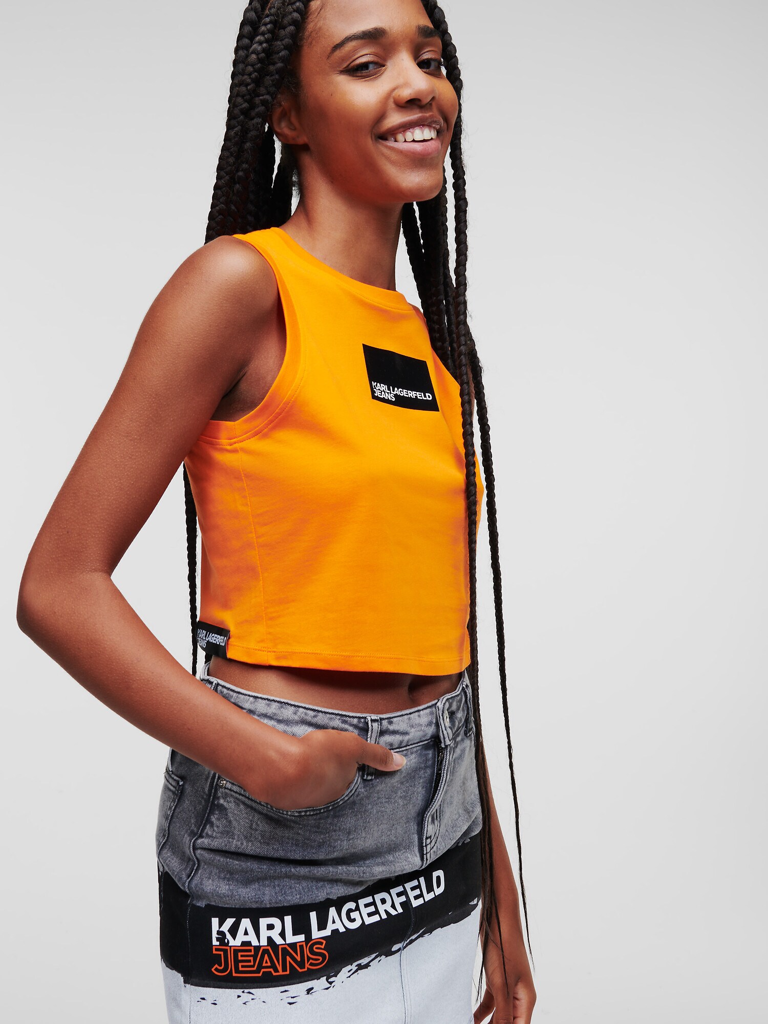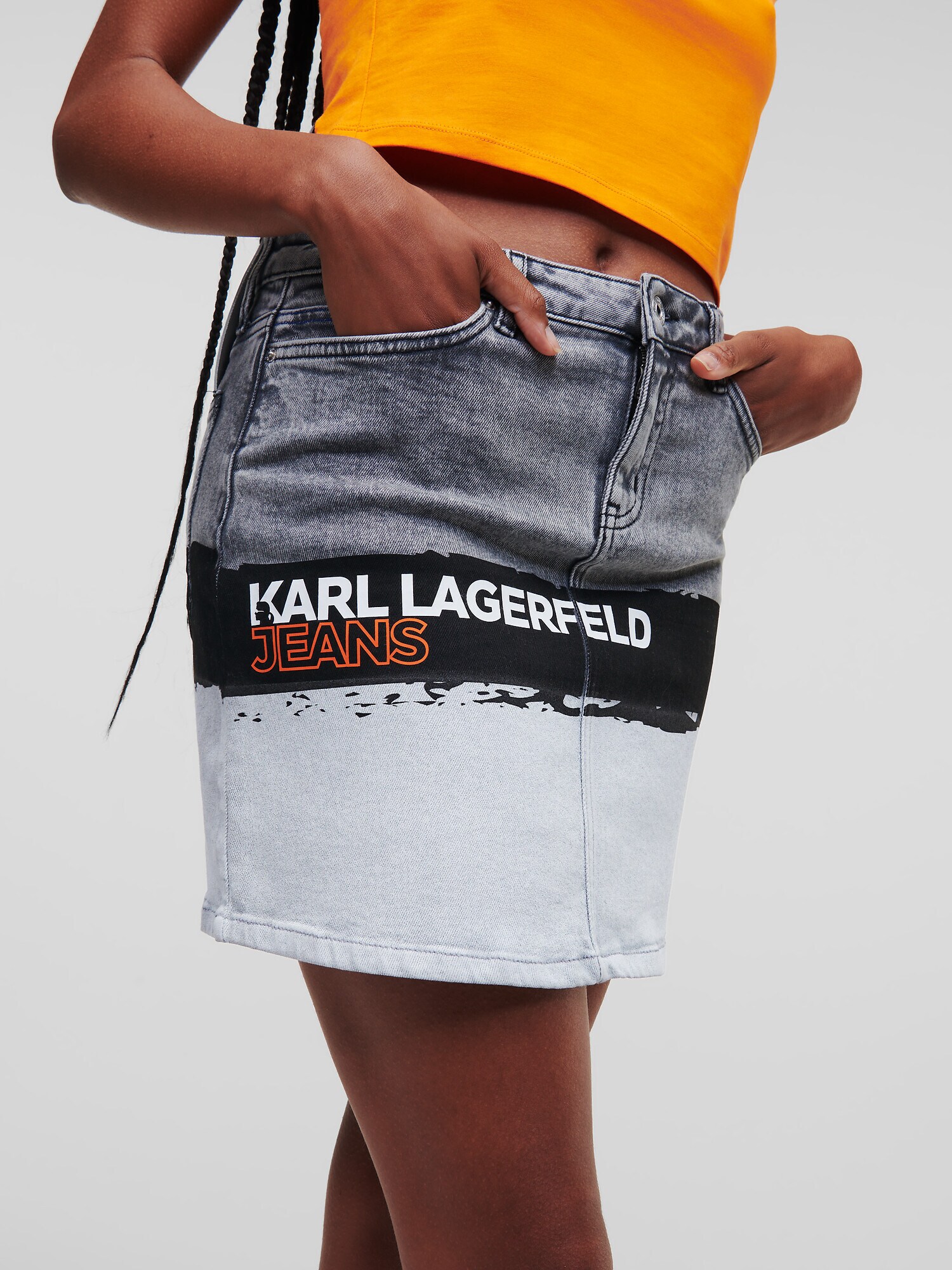 KARL LAGERFELD JEANS Fustă gri denim / negru / alb