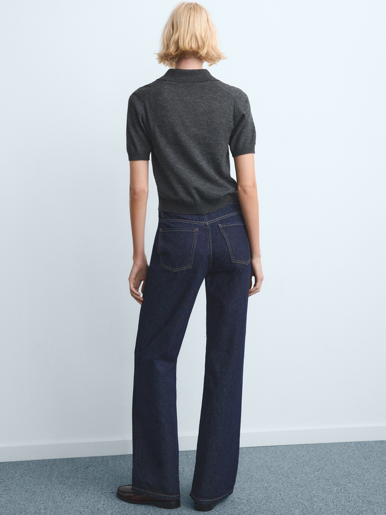 Design: Tiv/ margine tighelită, Închidere cu fermoar, Model cu 5 buzunare; Tip de închidere: Fermoar; Material: Denim; Imprimeu: Monocrom; Detalii: Cusături contrastante, Material rigid, Găici pentru curea; Culoare: Rinsed/dark washed; Lungimea: Lung/maxi; Tipul croiului: Largi; Tipul taliei: High waist