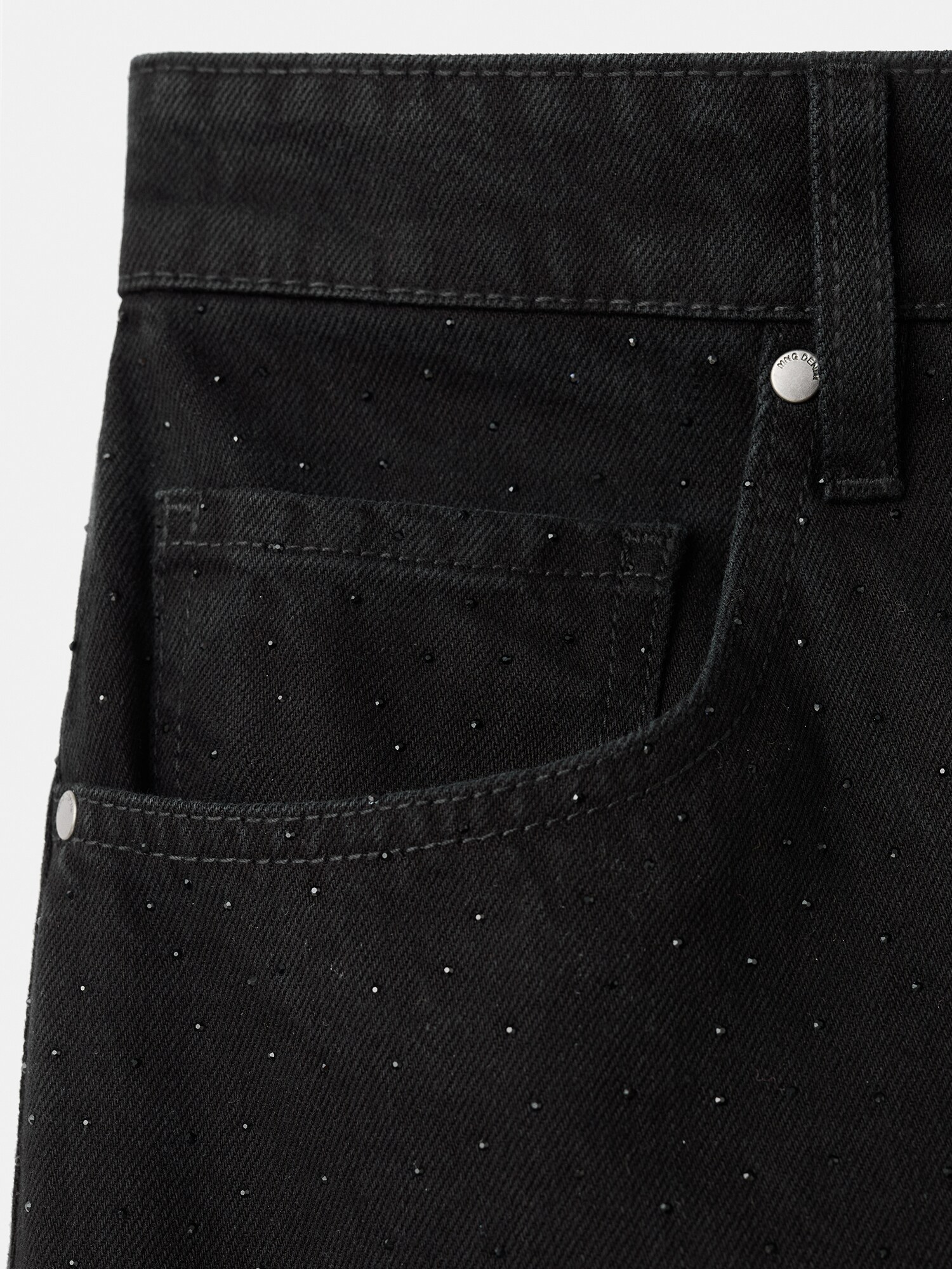 Design: Tiv/ margine tighelită, Închidere cu fermoar, Model cu 5 buzunare; Tip de închidere: Fermoar; Material: Denim; Imprimeu: Monocrom; Detalii: Pietre decorative; Detalii: Cusături ton în ton, Material rigid, Găici pentru curea; Culoare: Denim colorat; Lungimea: Lung/maxi; Tipul croiului: Wide leg; Tipul taliei: Mid waist