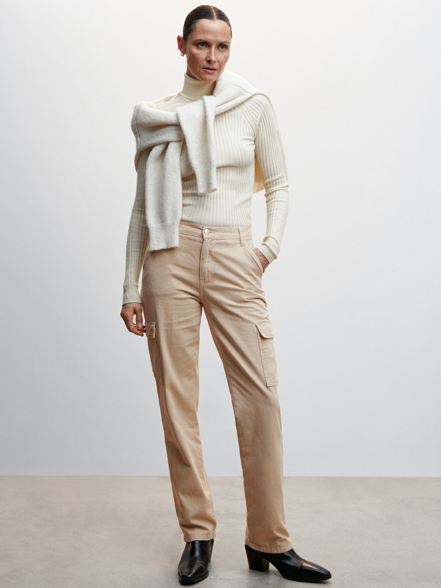 MANGO Pantaloni eleganți newcargo bej deschis