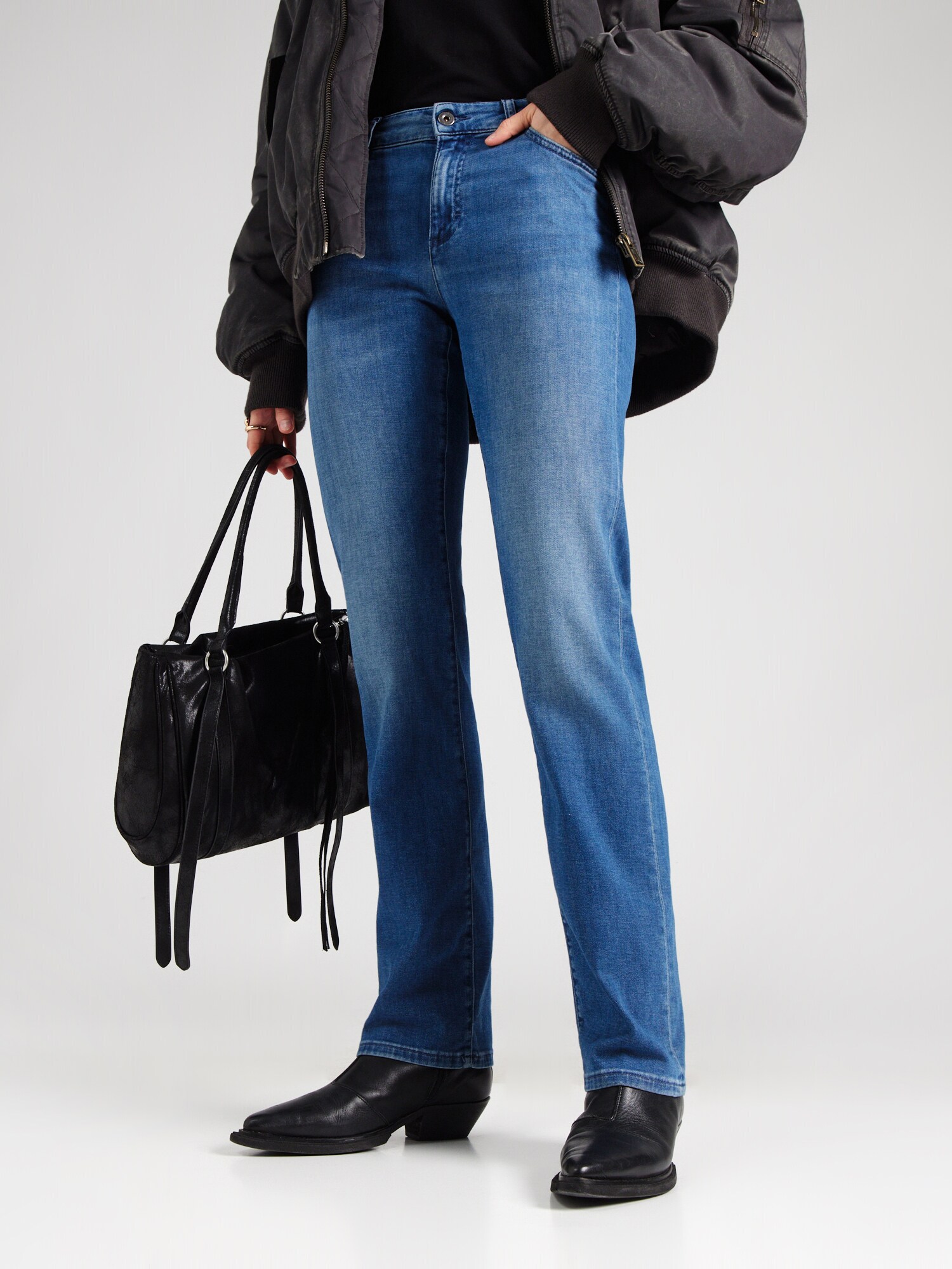 Design: Închidere cu fermoar, Model cu 5 buzunare; Tip de închidere: Fermoar; Material: Denim; Imprimeu: Monocrom; Detalii: Petic cu logo, Efect prespălat, Găici pentru curea; Culoare: Light washed; Lungimea: Lung/maxi; Tipul croiului: Regular; Tipul taliei: Mid waist