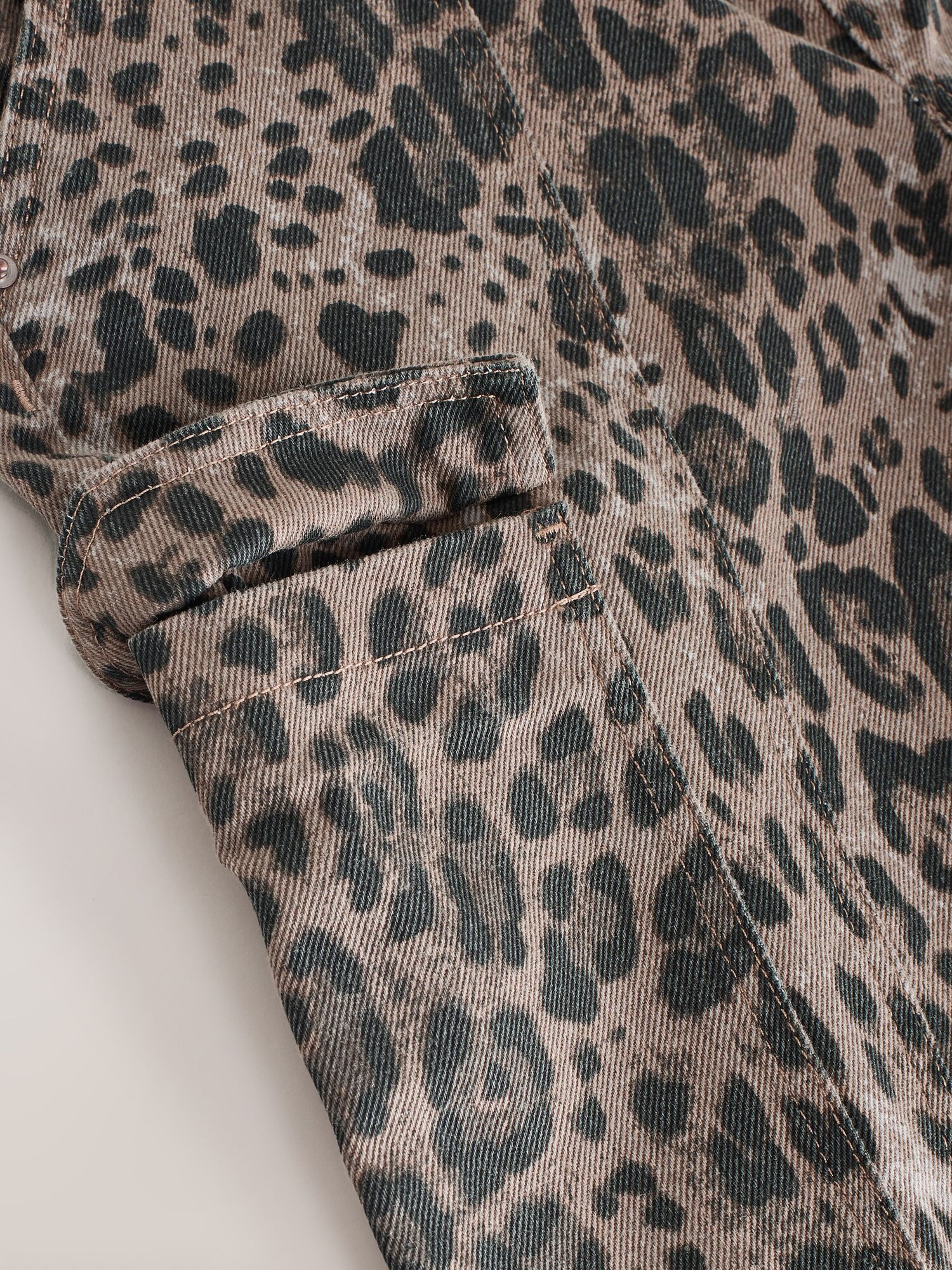 Design: Buzunare cargo; Tip de închidere: Fermoar; Material: Denim; Imprimeu: Animalprint; Detalii: Imprimat în totalitate; Lungimea: Lung/maxi; Tipul croiului: Largi; Tipul taliei: Mid waist