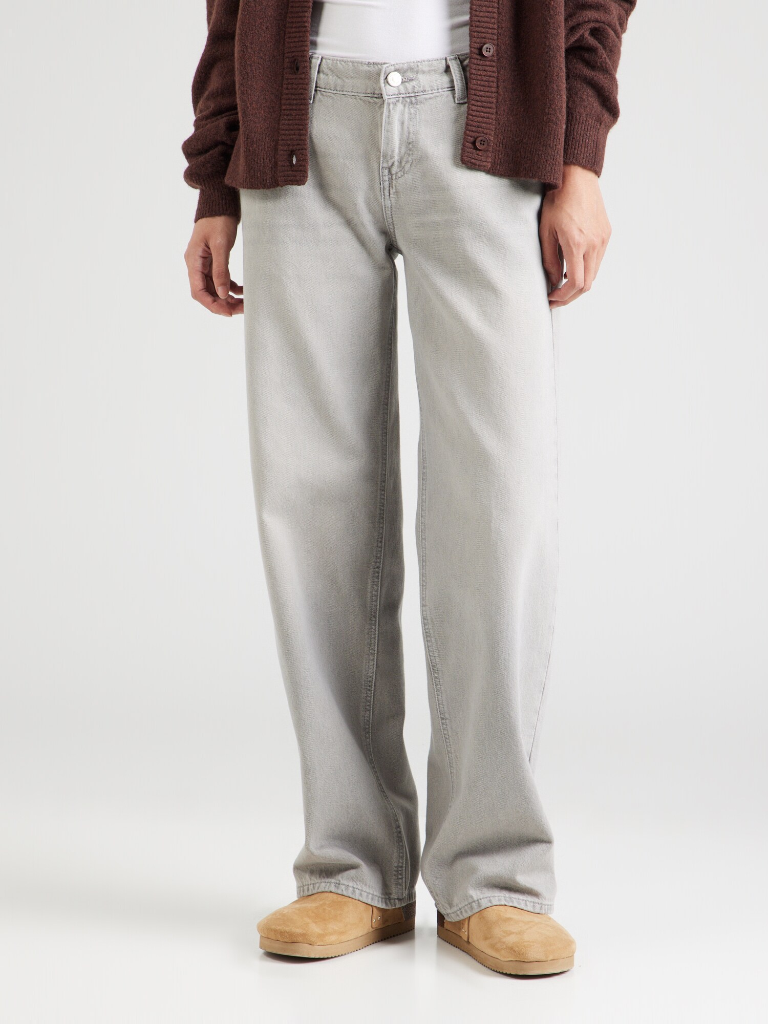 Îmbrăcați-vă în confort și stil cu blugii ONLBrenda gri deschis, o alegere ideală pentru orice ocazie! Acest model cu croi larg și talie joasă nu doar că accentuează silueta, dar îți oferă și libertatea de mișcare de care ai nevoie în fiecare zi. Detaliile precum tivul cu margine tighelită și pietricelele decorative adaugă un strop de personalitate și rafinament, transformându-i în piesa centrală a oricărei ținute. Cu un design practic ce include cinci buzunare și găici pentru curea, acești blugi îmbină funcționalitatea cu un look modern și chic. Fă-ți garderoba mai interesantă și pune-ți în valoare stilul personal – alege astăzi blugii ONLBrenda și bucură-te de o combinație perfectă între trendy și confort!