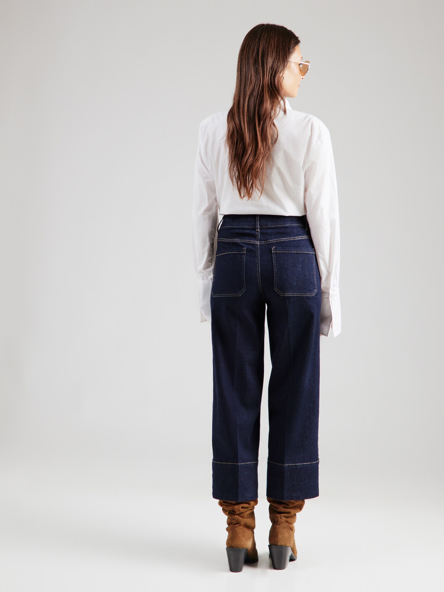 Design: Fermoar ascuns, Buzunare spate; Tip de închidere: Fermoar; Material: Denim; Imprimeu: Monocrom; Detalii: Cusături contrastante, Găici pentru curea; Culoare: Raw/unwashed; Lungimea: Lungime 7/8; Tipul croiului: Wide leg; Tipul taliei: High waist