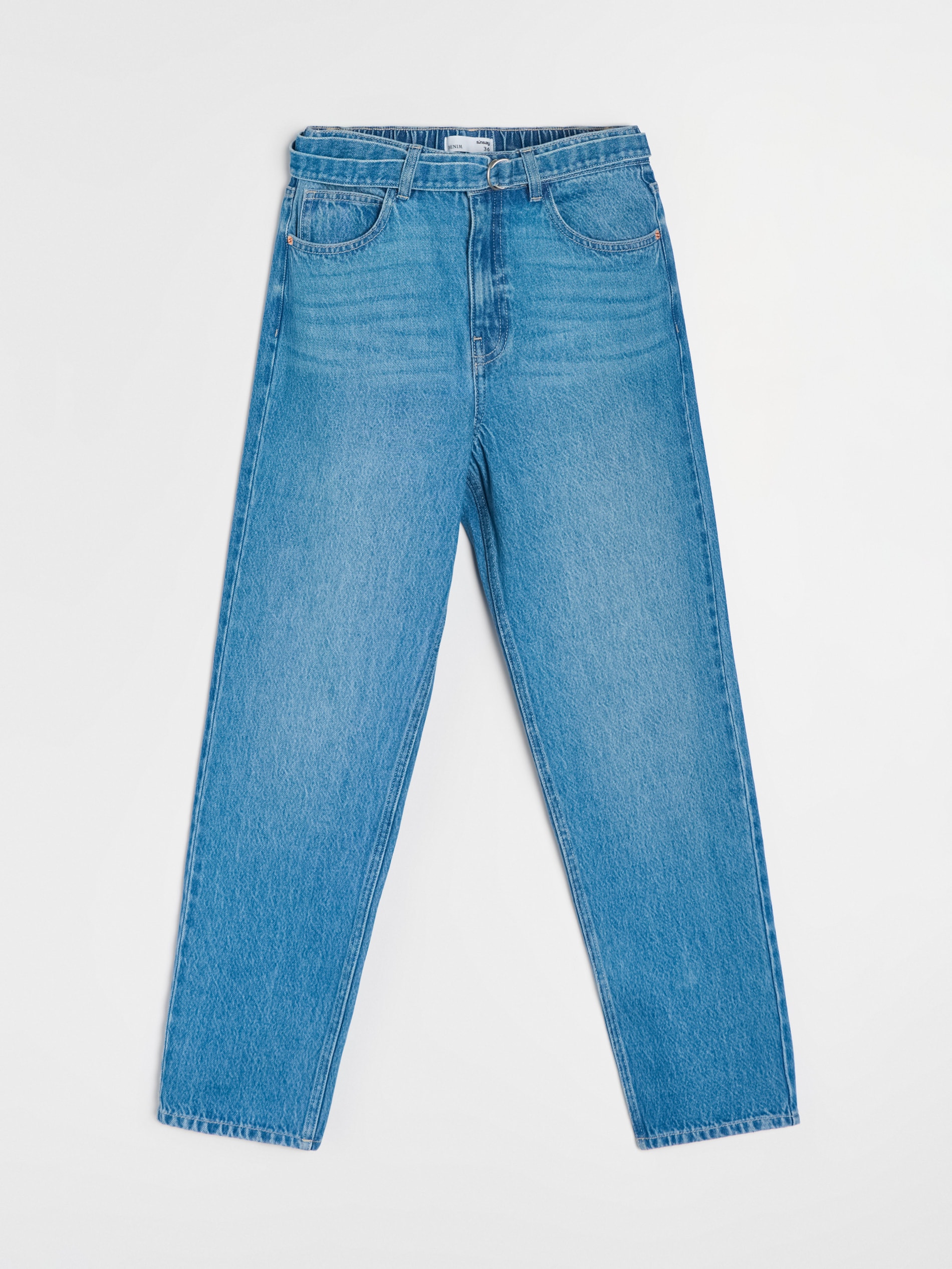 Sinsay - Blugi mom fit cu efect spălat - albastru