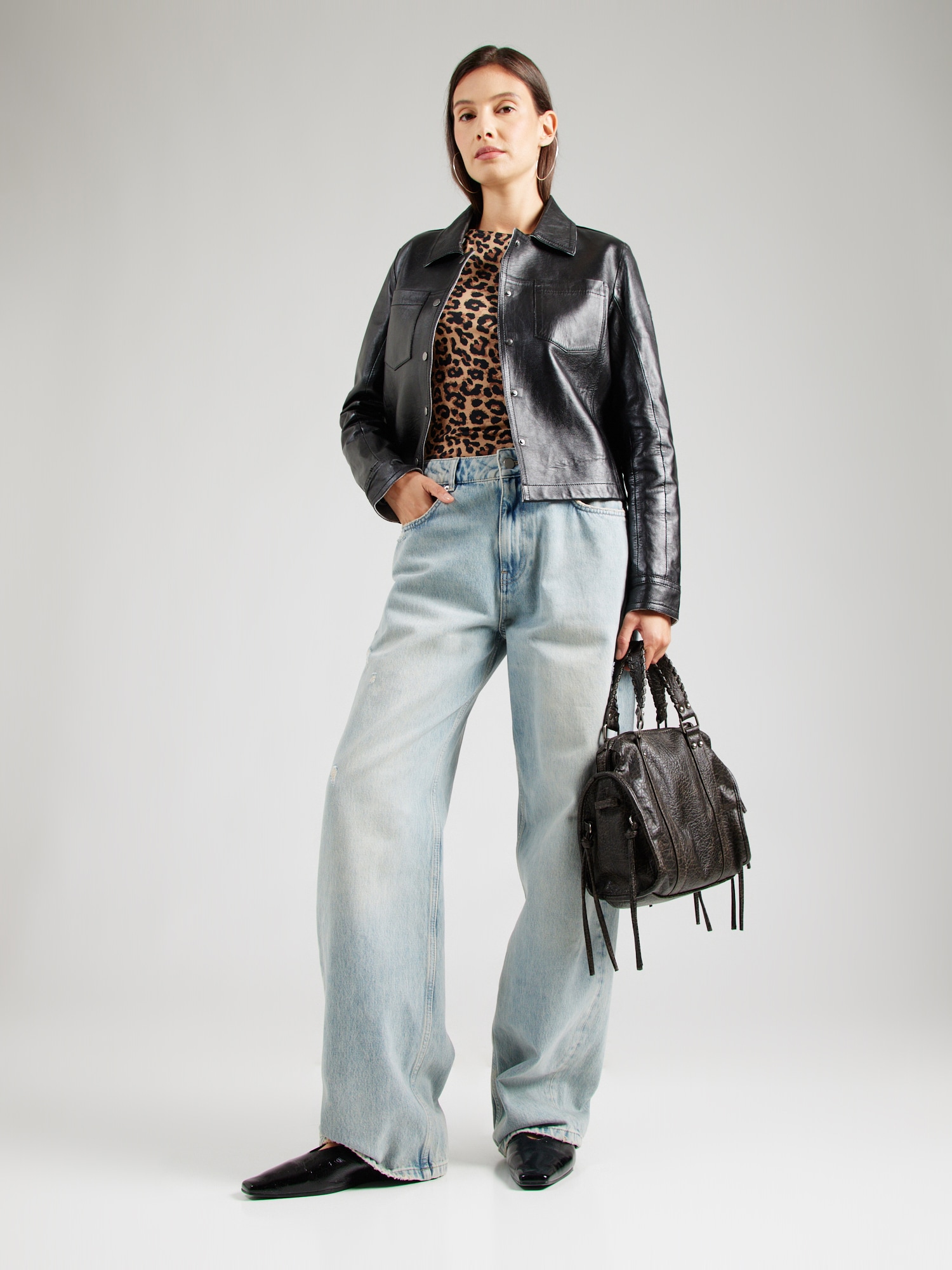 Design: Tiv/ margine tighelită, Închidere cu fermoar, Model cu 5 buzunare; Tip de închidere: Fermoar; Material: Denim; Imprimeu: Monocrom; Detalii: Pietricele decorative, Cusături contrastante, Material rigid, Găici pentru curea; Culoare: Destroyed; Lungimea: Lung/maxi; Tipul croiului: Wide leg; Tipul taliei: Mid waist