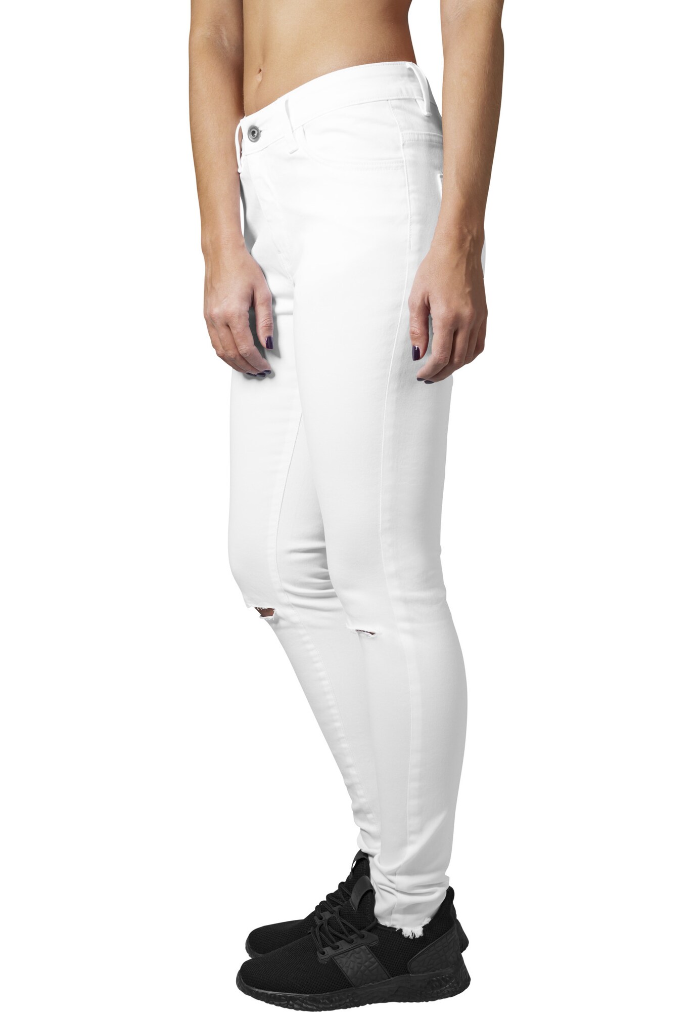 Design: Tiv cu franjuri, Închidere cu fermoar, Model cu 5 buzunare; Material: Denim; Imprimeu: Monocrom; Detalii: Cusături ton în ton, Used-Look, Găici pentru curea; Culoare: Destroyed; Lungimea: Lung/maxi; Tipul croiului: Skinny; Tipul taliei: Mid waist