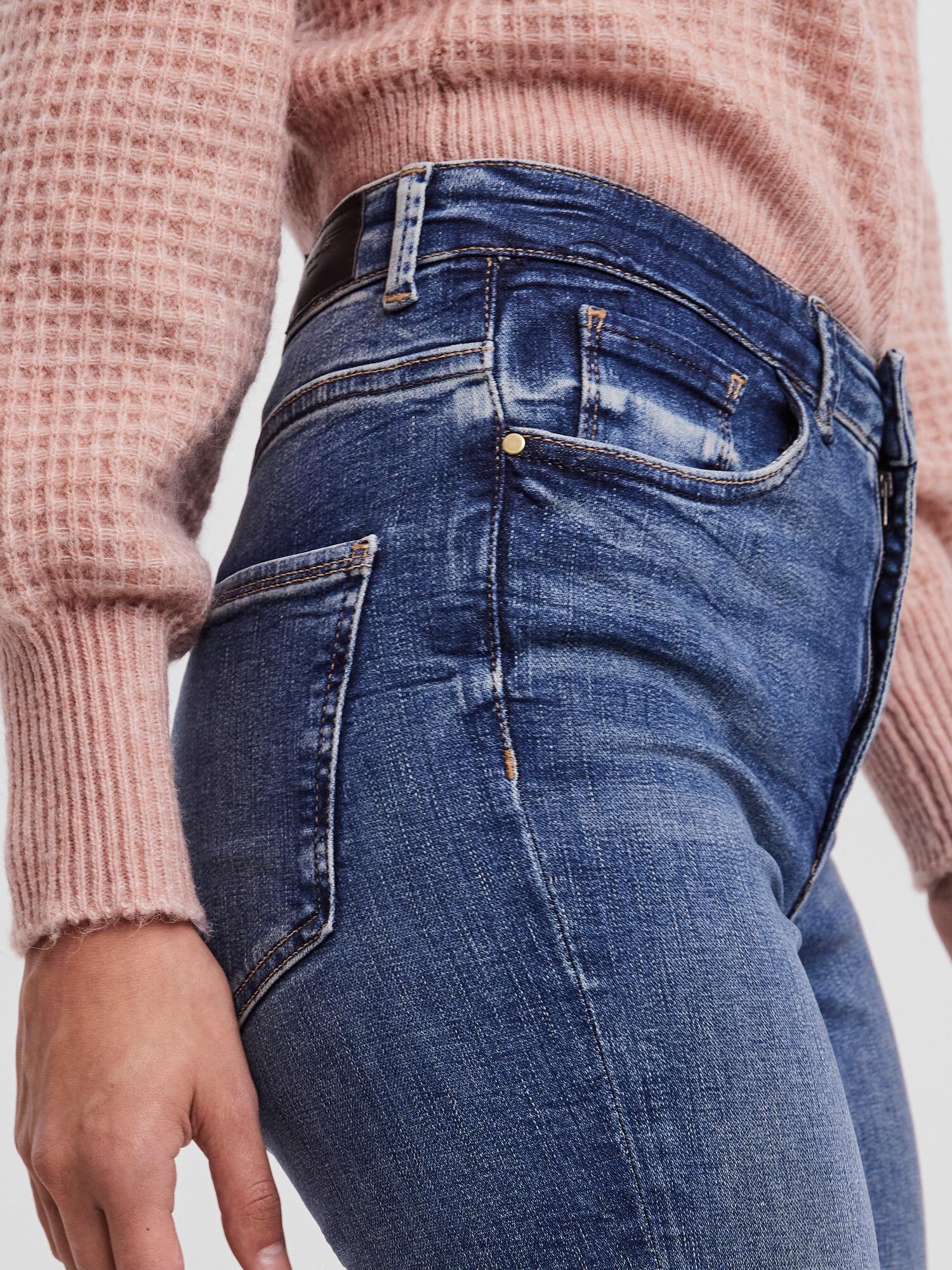 Design: Tiv/ margine tighelită, Închidere cu fermoar, Model cu 5 buzunare; Tip de închidere: Fermoar; Material: Denim; Imprimeu: Monocrom; Detalii: Patches; Detalii: Pietricele decorative, Cusături contrastante, Petic cu logo, Material rigid, Găici pentru curea; Culoare: Heavy washed; Lungimea: Lung/maxi; Tipul croiului: Skinny; Tipul taliei: Mid waist