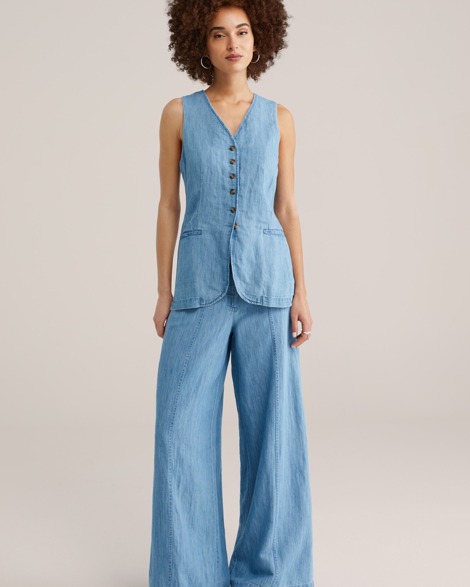 Design: Șliț lateral, Buzunare laterale deschise; Tip de închidere: Fermoar; Material: Denim; Imprimeu: Melanj; Detalii: Cusături ton în ton; Culoare: Denim albastru/ washed; Lungimea: Lung/maxi; Tipul croiului: Wide leg; Tipul taliei: High waist