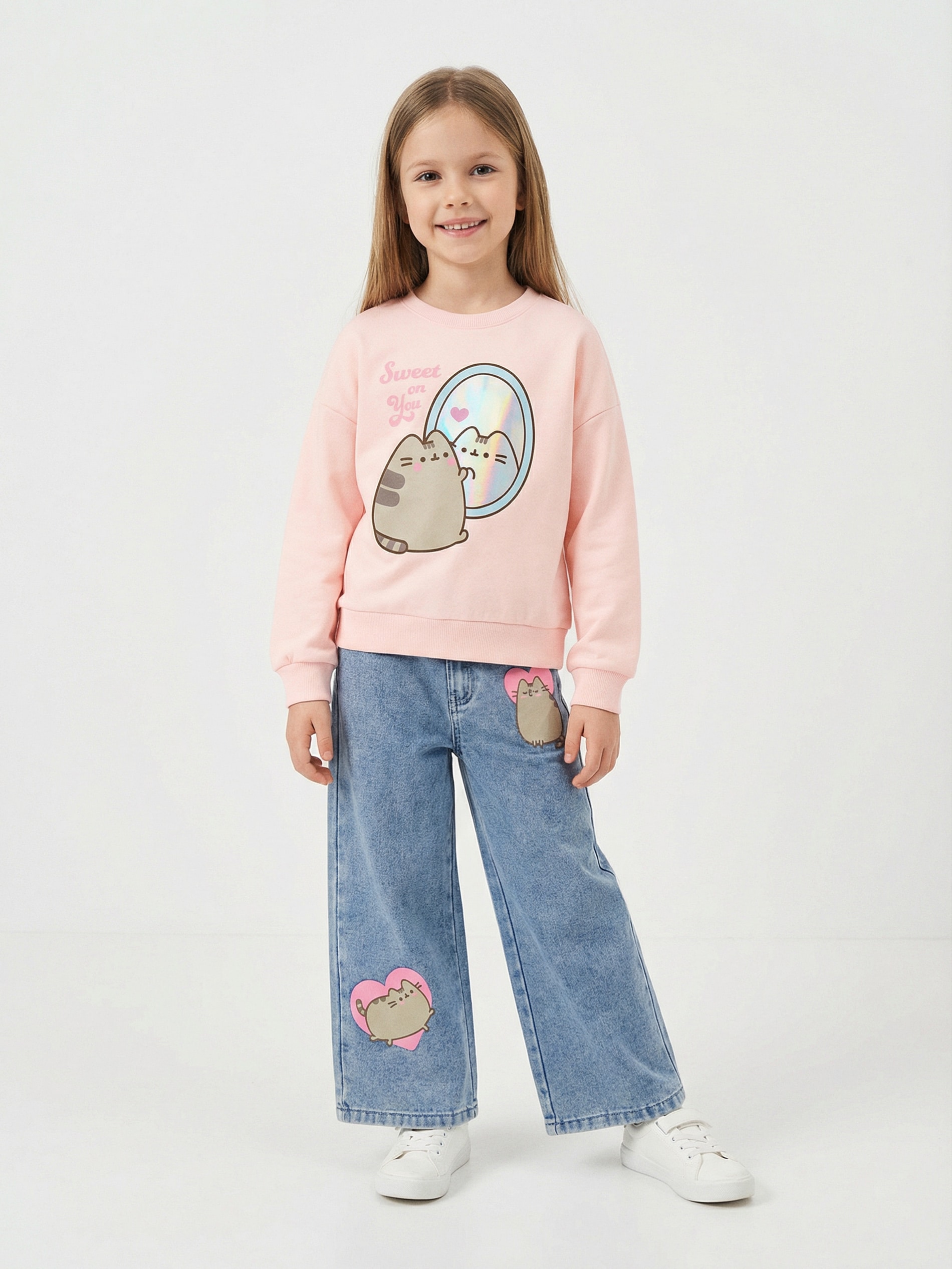 Sinsay - Blugi wide leg Pusheen the Cat - albastru -