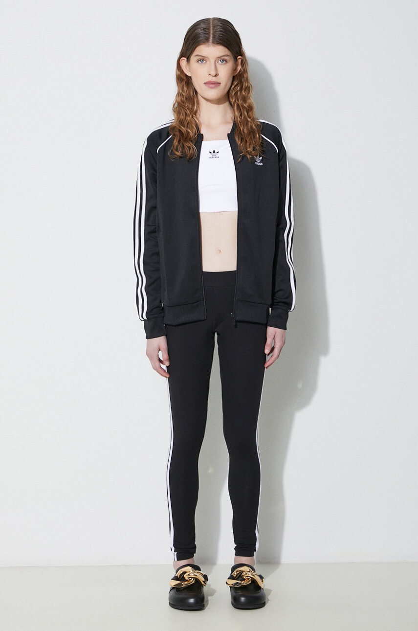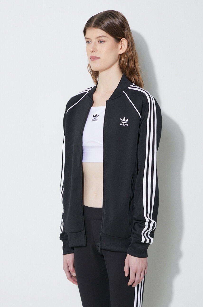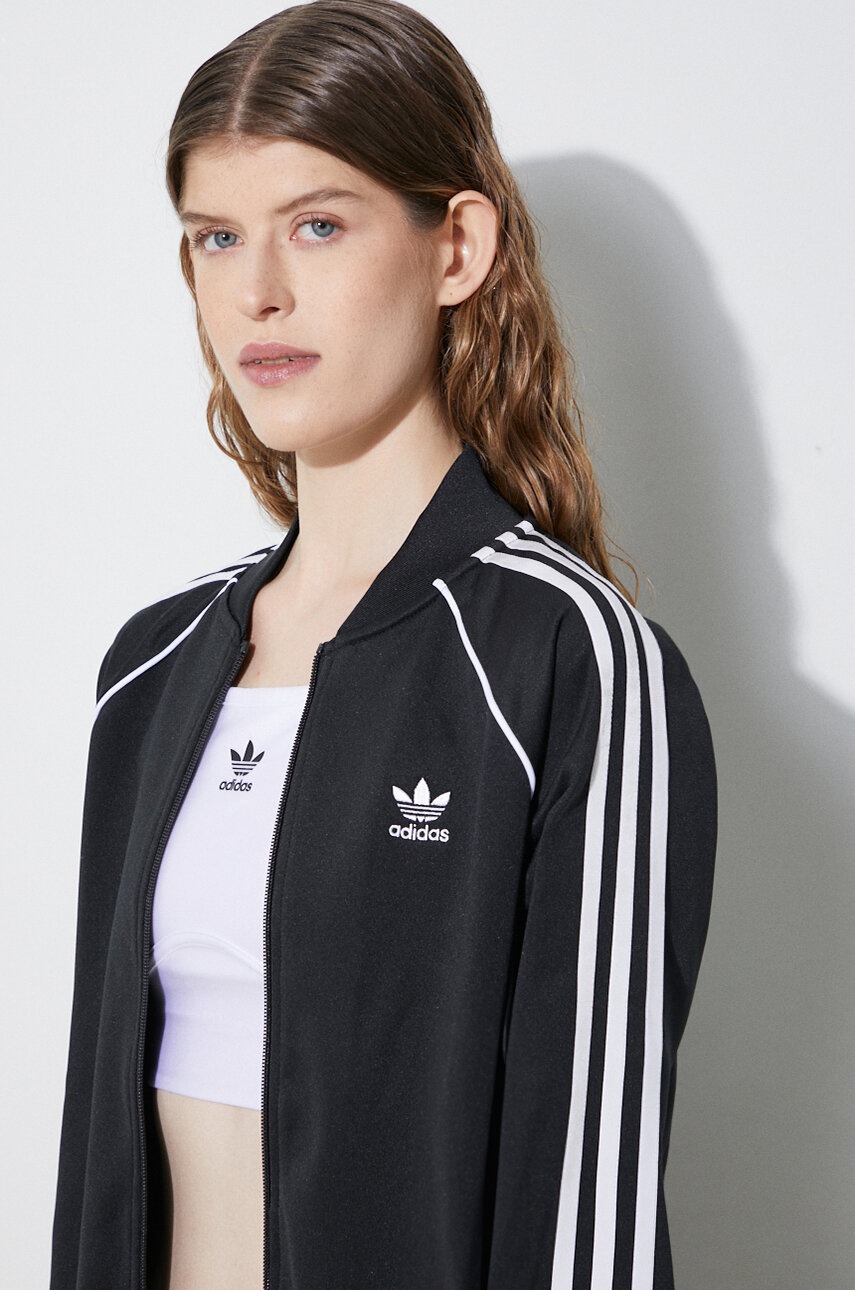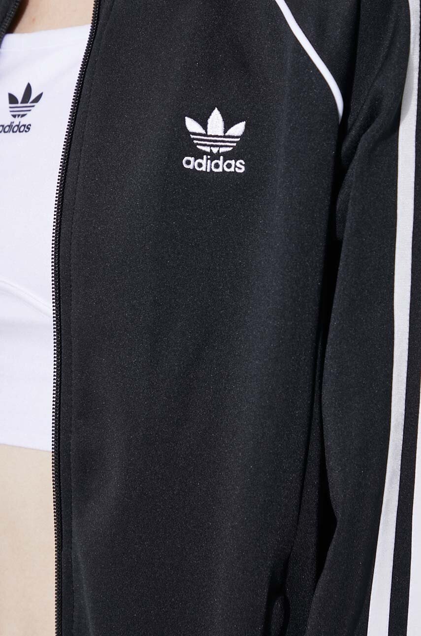 adidas Originals bluză femei negru IK4034, mărime S, din tricot flexibil, cu fermoar, guler înalt, mâneci raglan, buzunare închise
