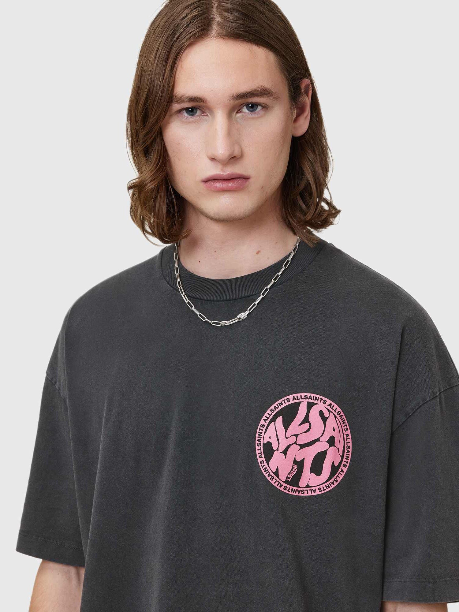 AllSaints Tricou DISTORTION gri metalic / roz deschis