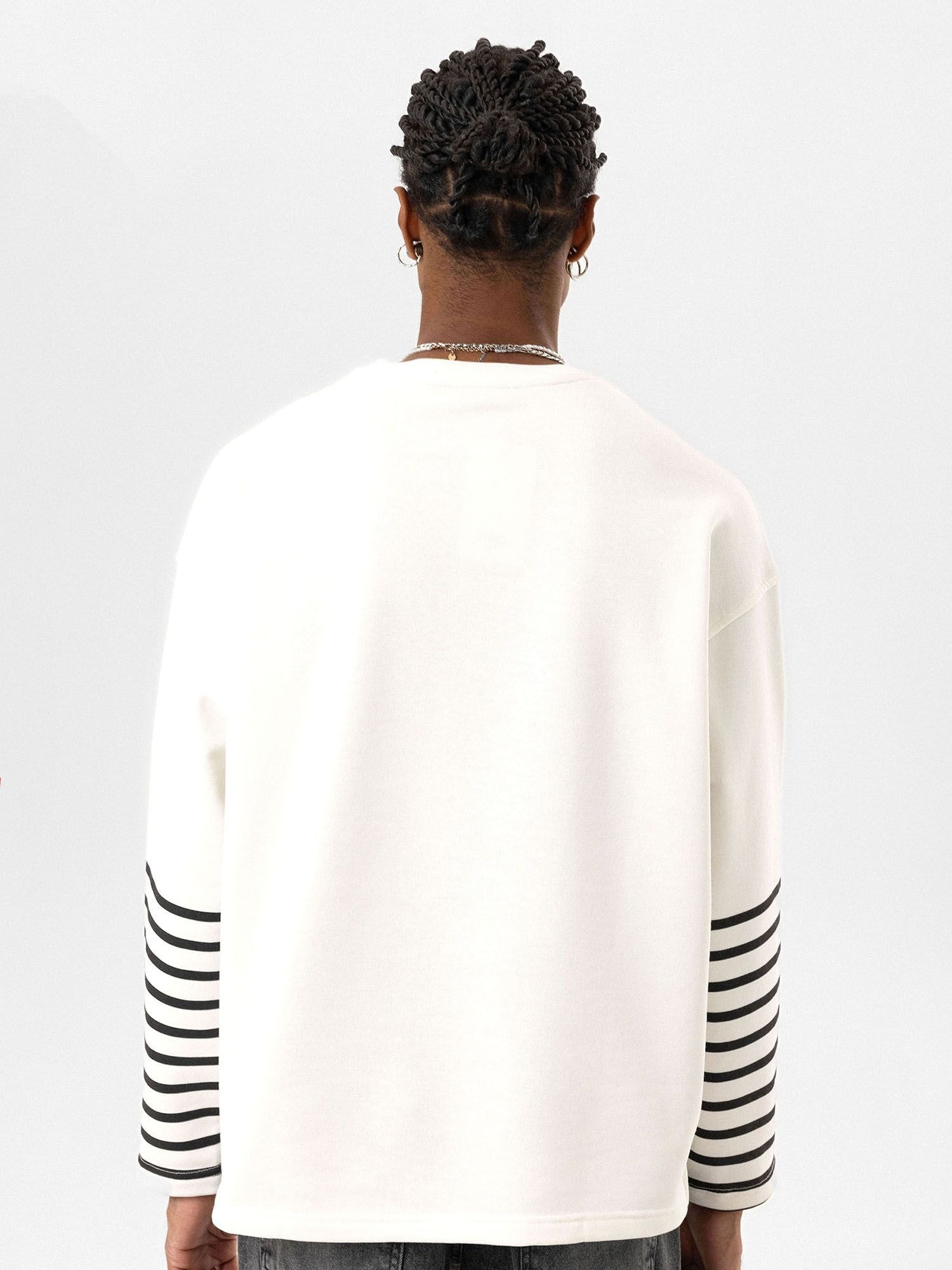 Design: Umăr întretăiat, Necktape; Material: Material sweat; Decolteu: Decolteu rotund; Imprimeu: Cu dungi; Detalii: Material moale; Croi: Croi lejer; Lungime mâneci: Mâncecă lungă