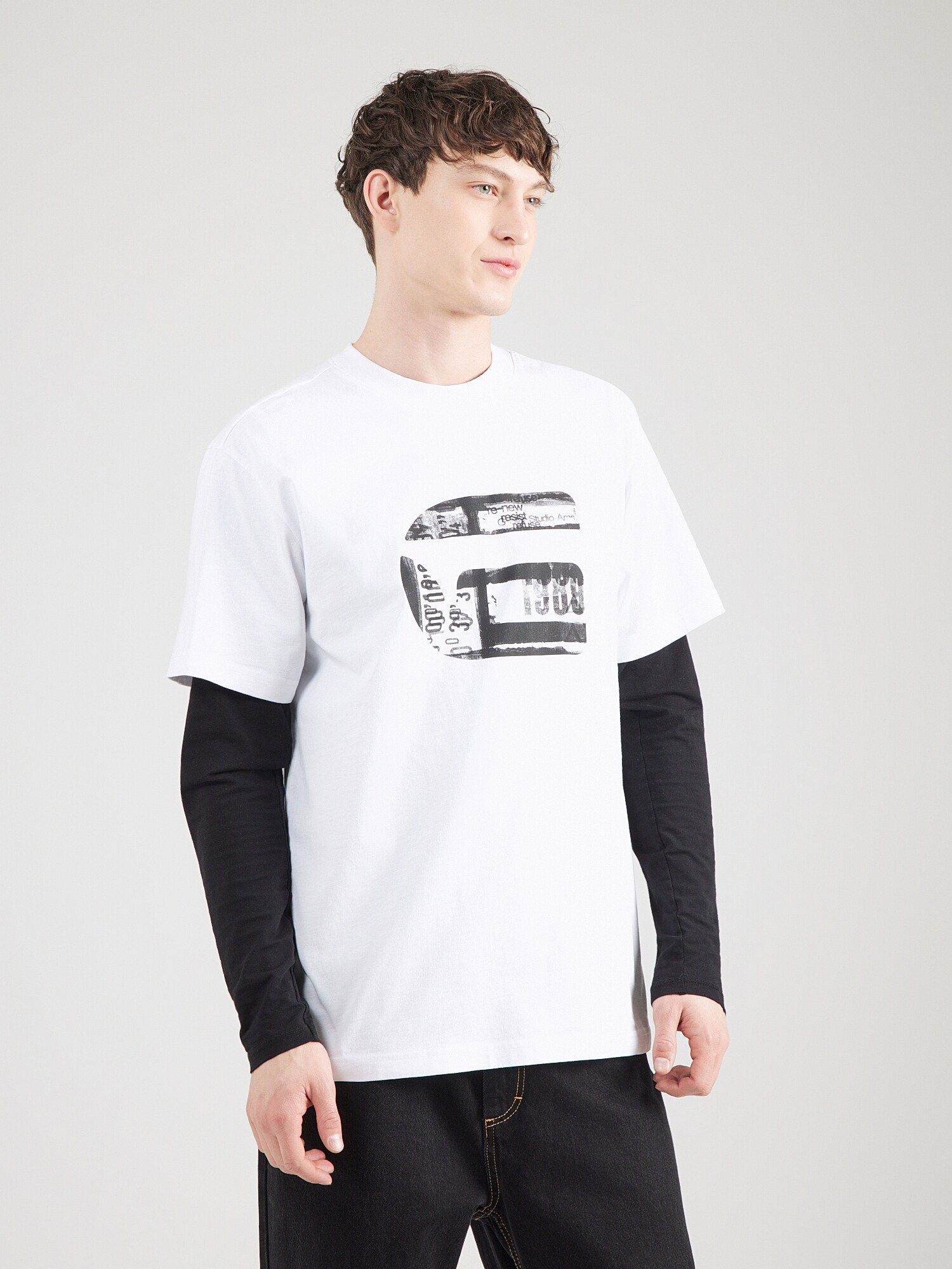 G-STAR Tricou gri metalic / alb