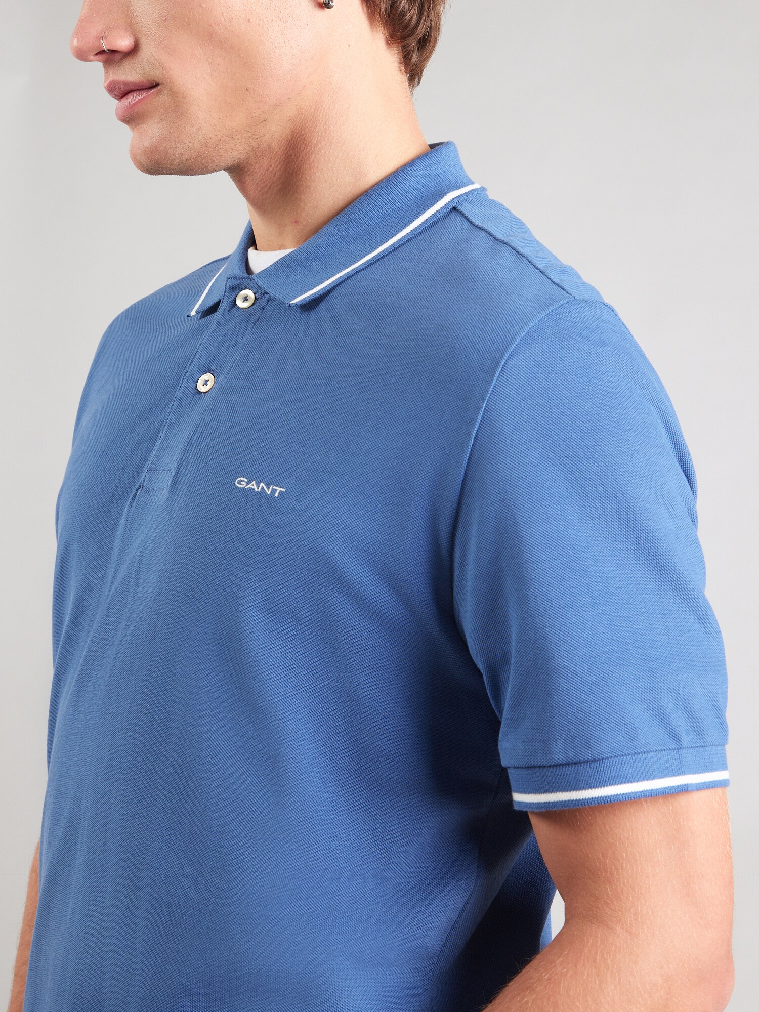 GANT Tricou RUGGER albastru denim / alb