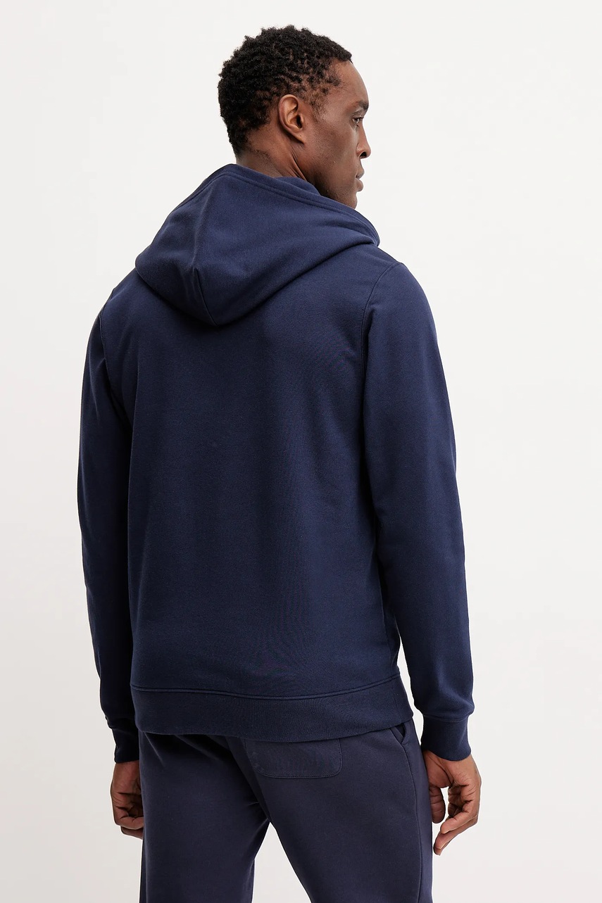 Helly Hansen Bluza barbati cu glugă, albastru marin, cu imprimeu, mărimea M, buzunar cangur, material tricot flexibil