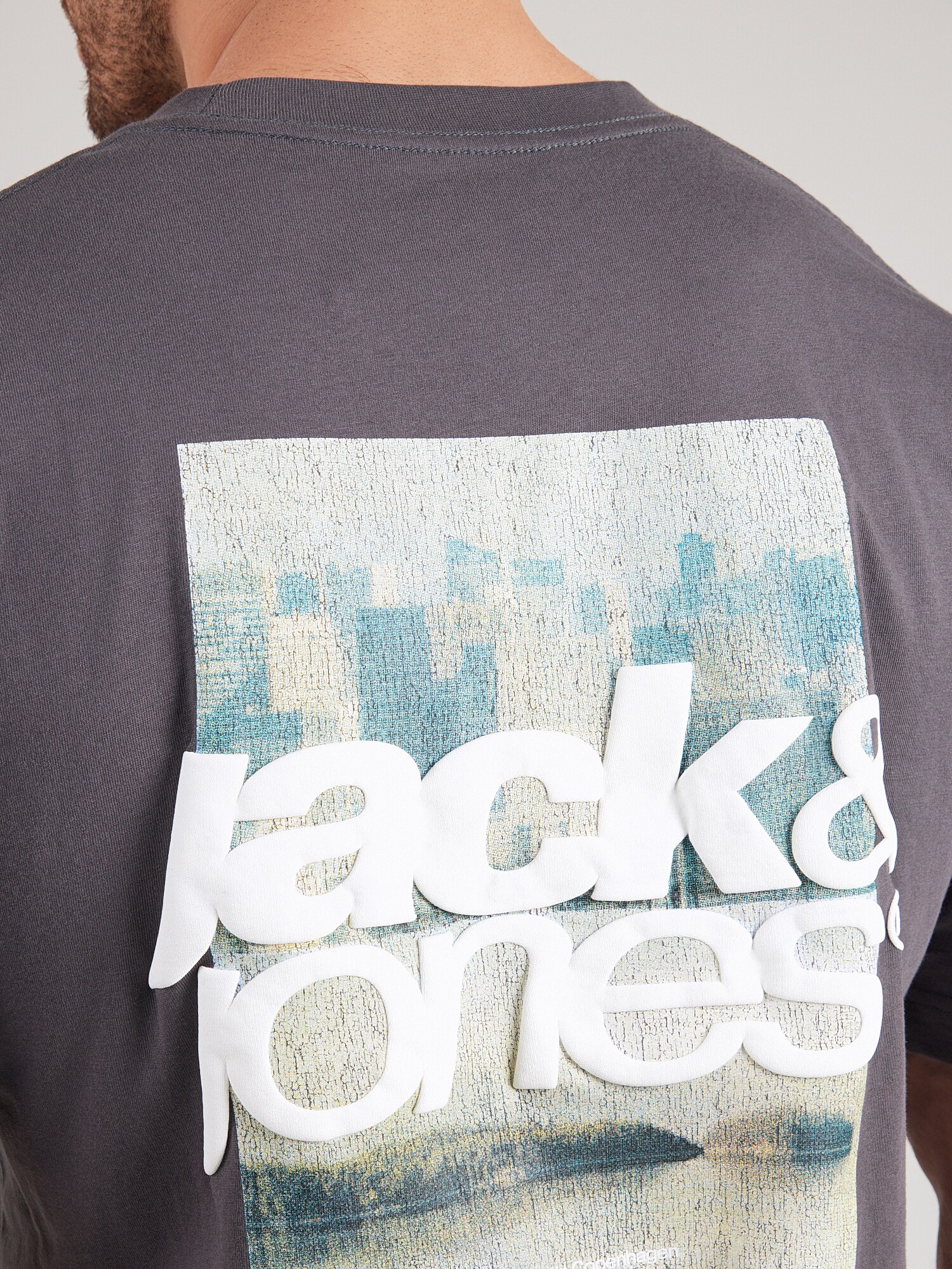 JACK & JONES Tricou JCOCLUB PHOTO cyan / gri deschis / gri închis / alb