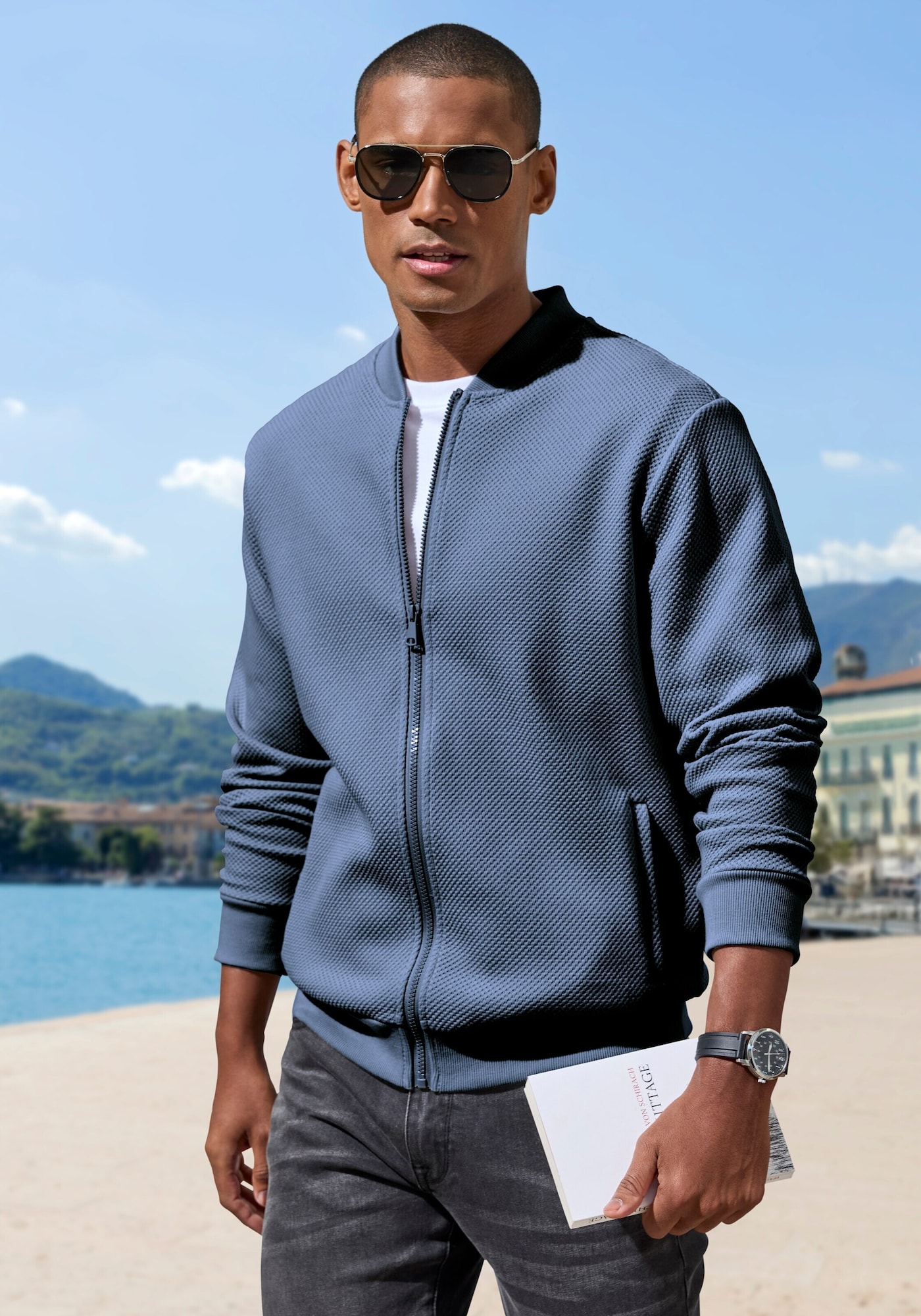 Design: Guler din tricot cu striații, Tiv drept, Manșete cu striații, Buzunare laterale deschise; Material: Material sweat; Decolteu: Decolteu rotund; Imprimeu: Monocrom; Detalii: Cusături ton în ton, Material moale; Croi: Croi normal; Lungime mâneci: Mâncecă lungă