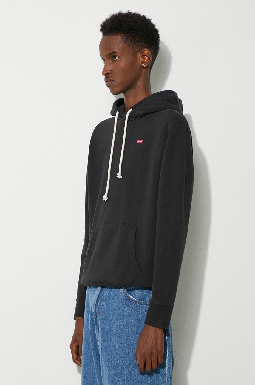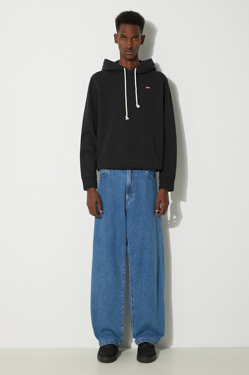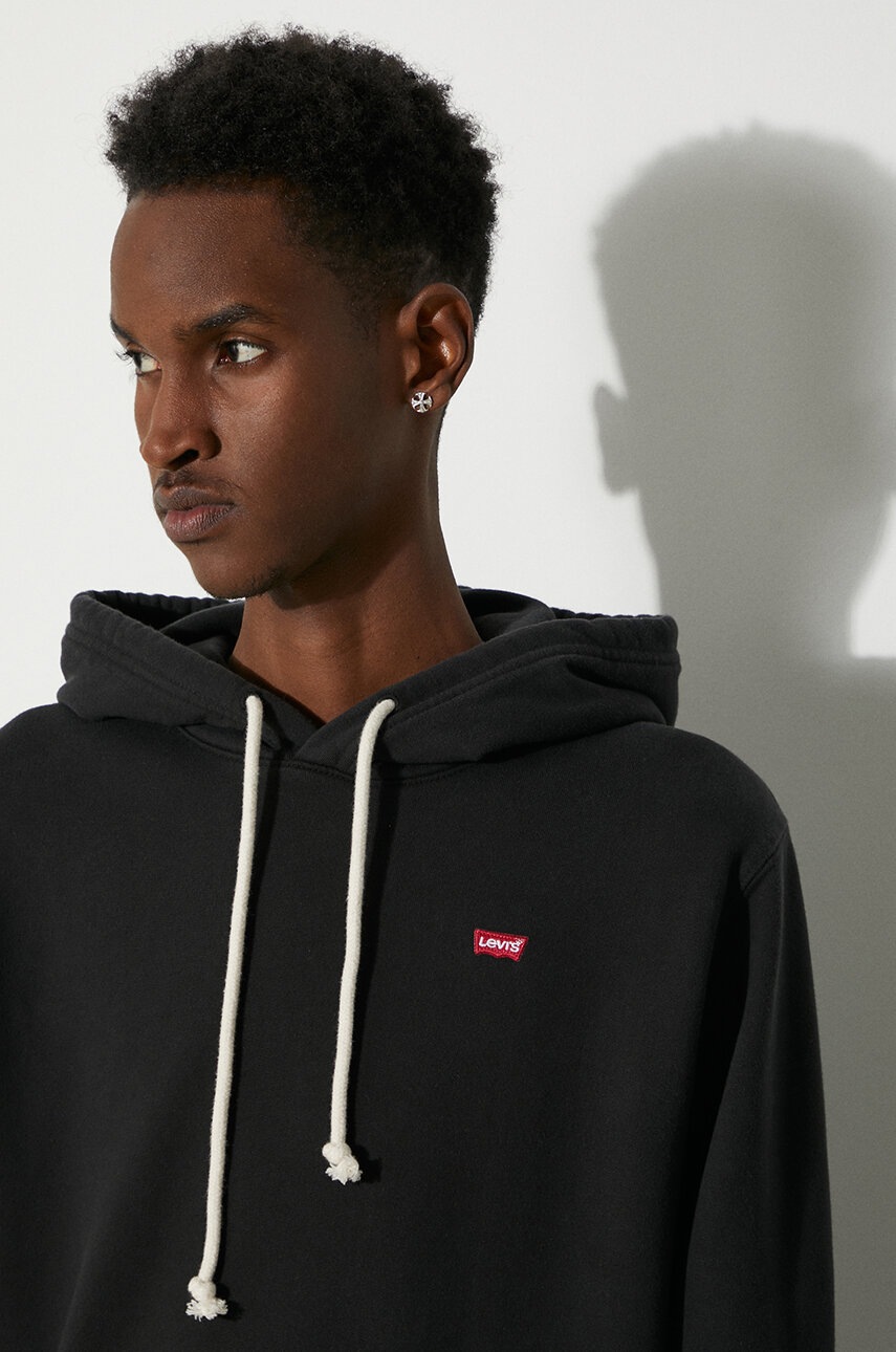 Levis bluză cu glugă, fason drept, tricot neted, material flexibil, culoare neagră, mărimea L