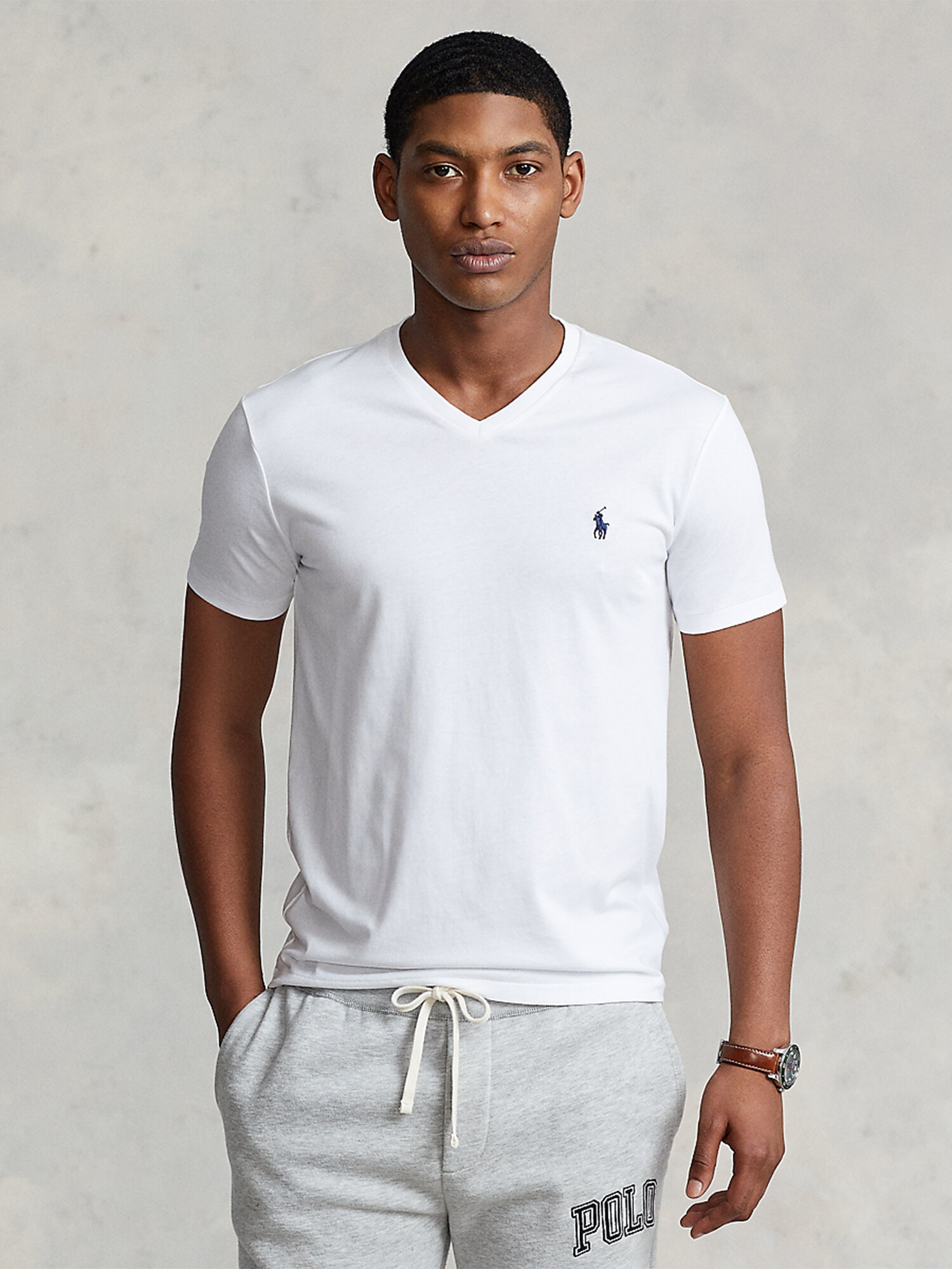 Design: Tiv/ margine tighelită, Guler din tricot cu striații, Tiv drept; Material: Jerseu; Decolteu: Decolteu în V; Imprimeu: Monocrom; Detalii: Logo brodat, Cusături ton în ton, Material moale; Croi: Croi mulat; Tipul croiului: Regular fit; Lungime mâneci: Mâneci scurte; Lungime: Lungime normală