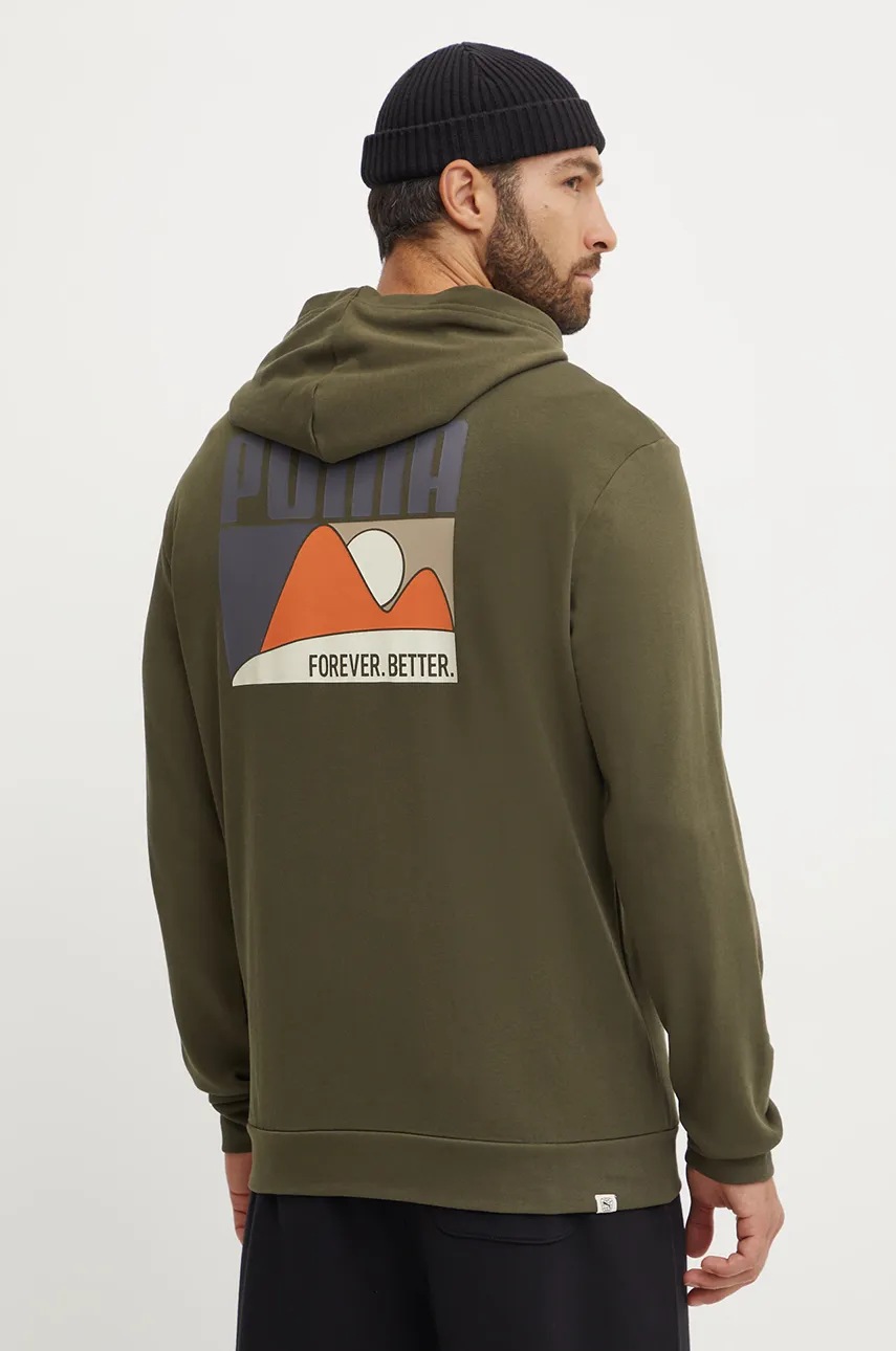 Puma bluza barbati, culoarea verde, cu glugă, cu imprimeu, 681759
