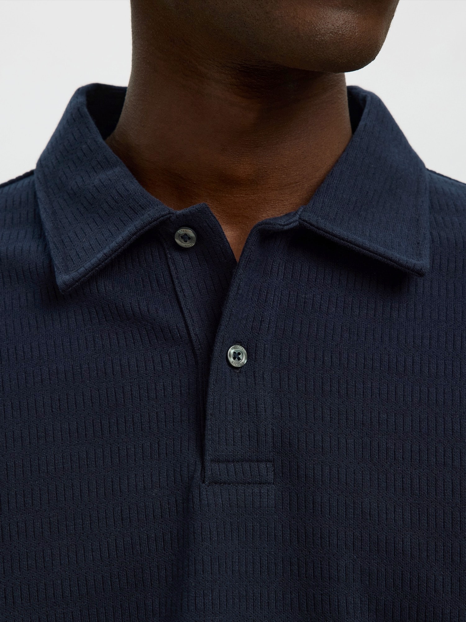 Design: Tiv/ margine tighelită, Guler întors; Tip de închidere: Închidere cu nasturi; Material: Jerseu; Decolteu: Guler polo; Imprimeu: Monocrom; Detalii: Cusături ton în ton, Material structurat; Croi: Croi lejer; Lungime mâneci: Mâncecă lungă; Lungime: Lungime normală