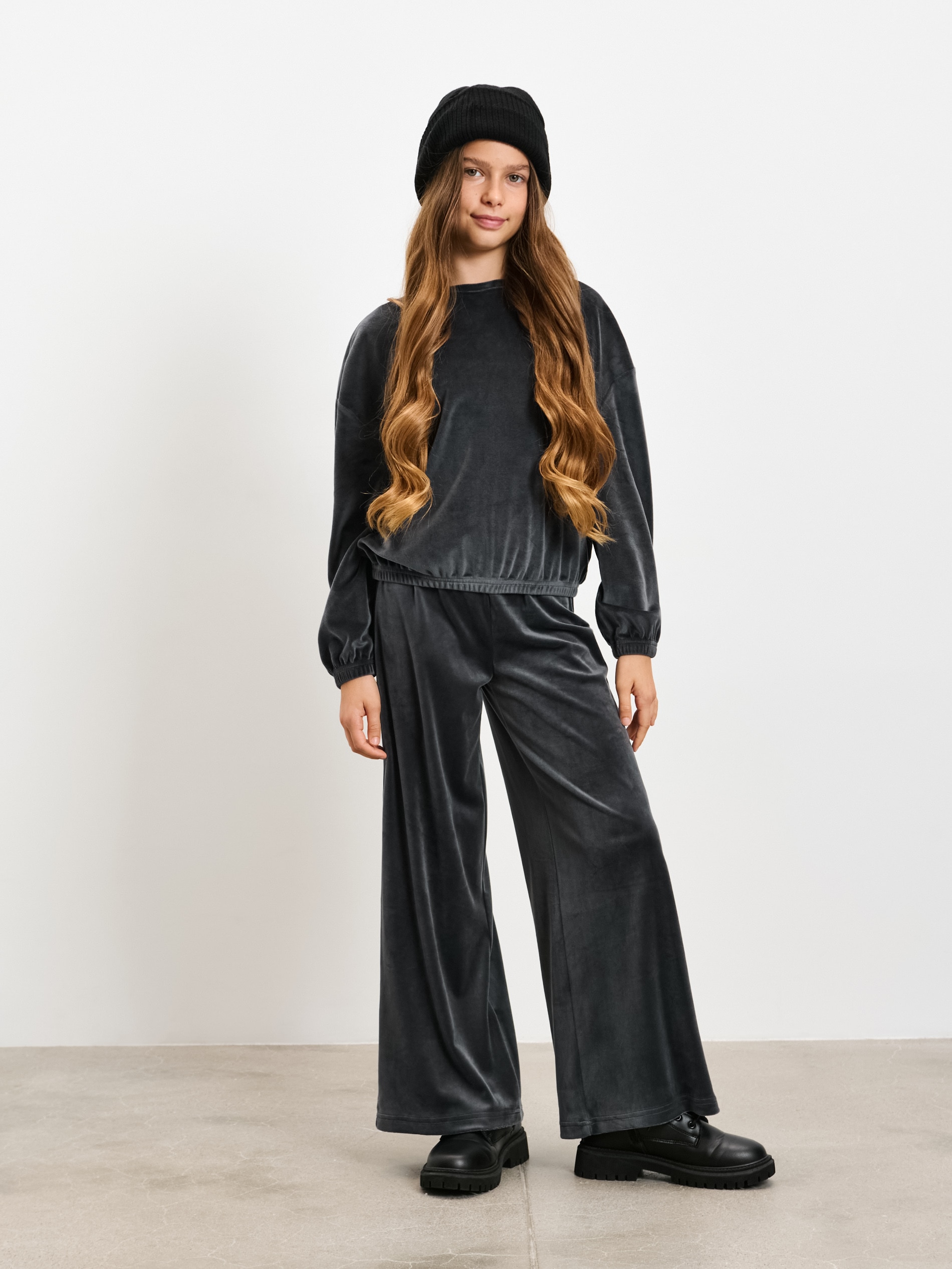 Sinsay - Bluză din velur cu guler rotund - negru-antracit