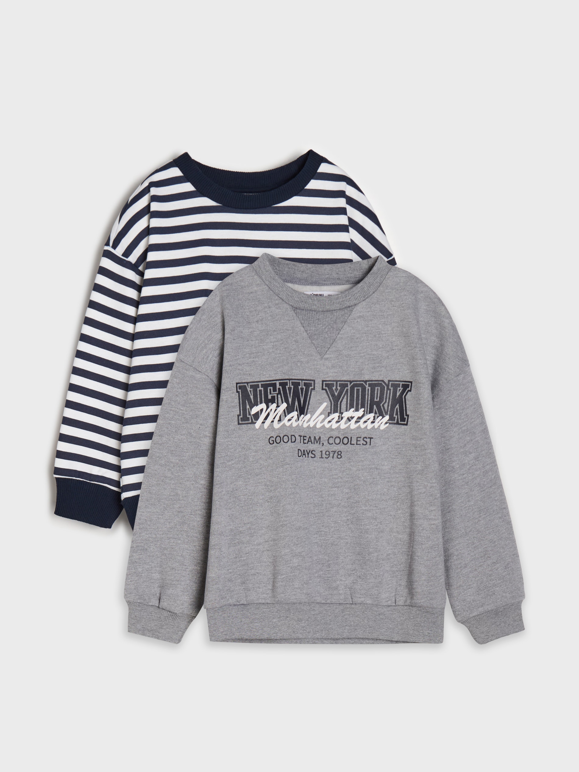 Sinsay - Hanorac crewneck 2 pack - gri-neutru